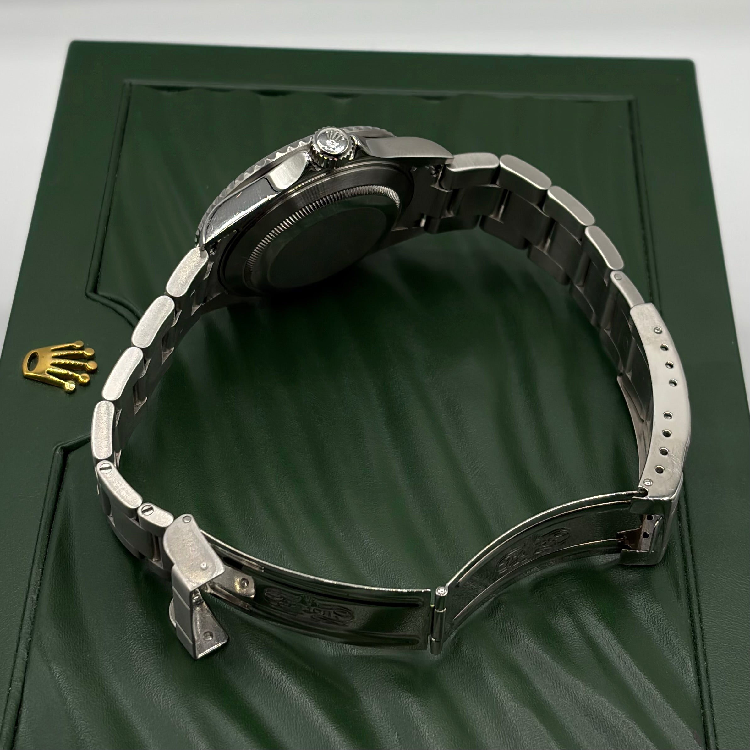 The Submariner 16610LV “Kermit” sports a 40 mm stainless-steel Oyster case with a screw-down Triplock crown, sapphire crystal and is water-resistant to 300 metres. Its most distinctive feature is the unidirectional aluminium bezel with a vibrant green “Lunette Verte” insert, paired with a glossy black “Maxi” dial featuring enlarged luminous hour markers and broader hands, engineered for superior legibility in low light. Inside beats the robust in-house automatic calibre 3135 — a movement long regarded as one of Rolex’s most reliable and enduring. The watch completes with a stainless-steel Oyster bracelet and solid end-links.