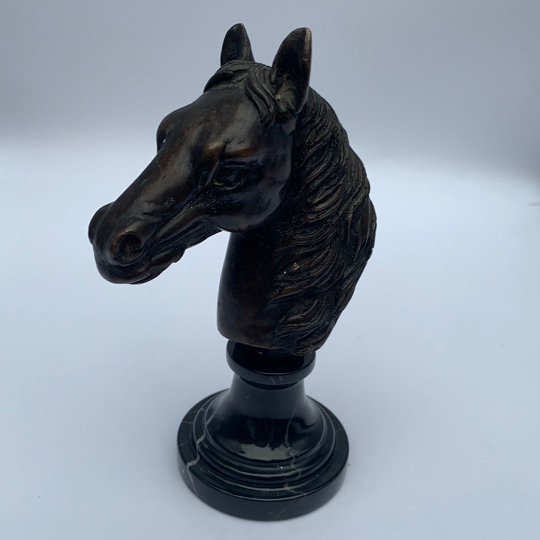 Bronzed Horse Head Bust Marble Base