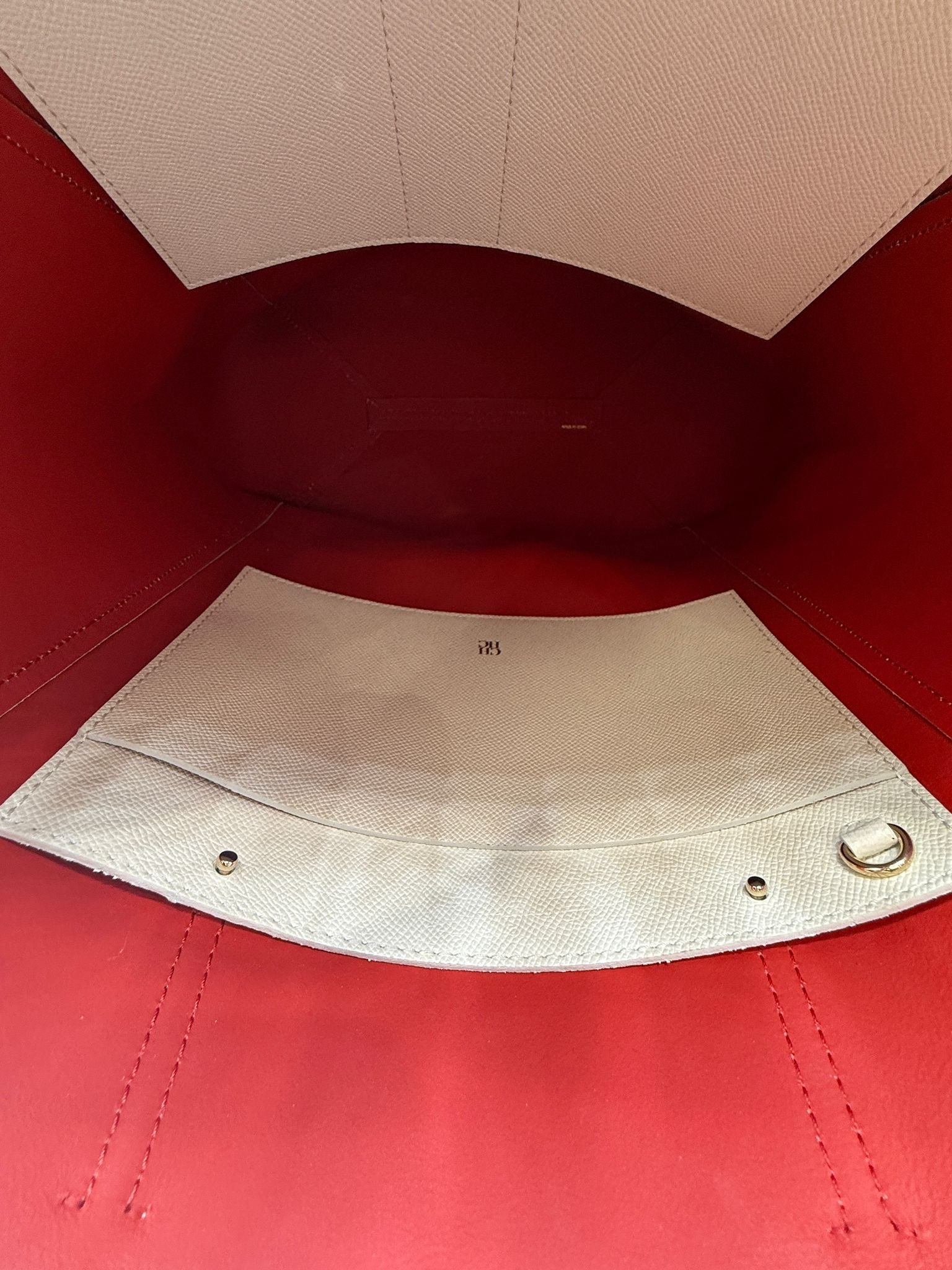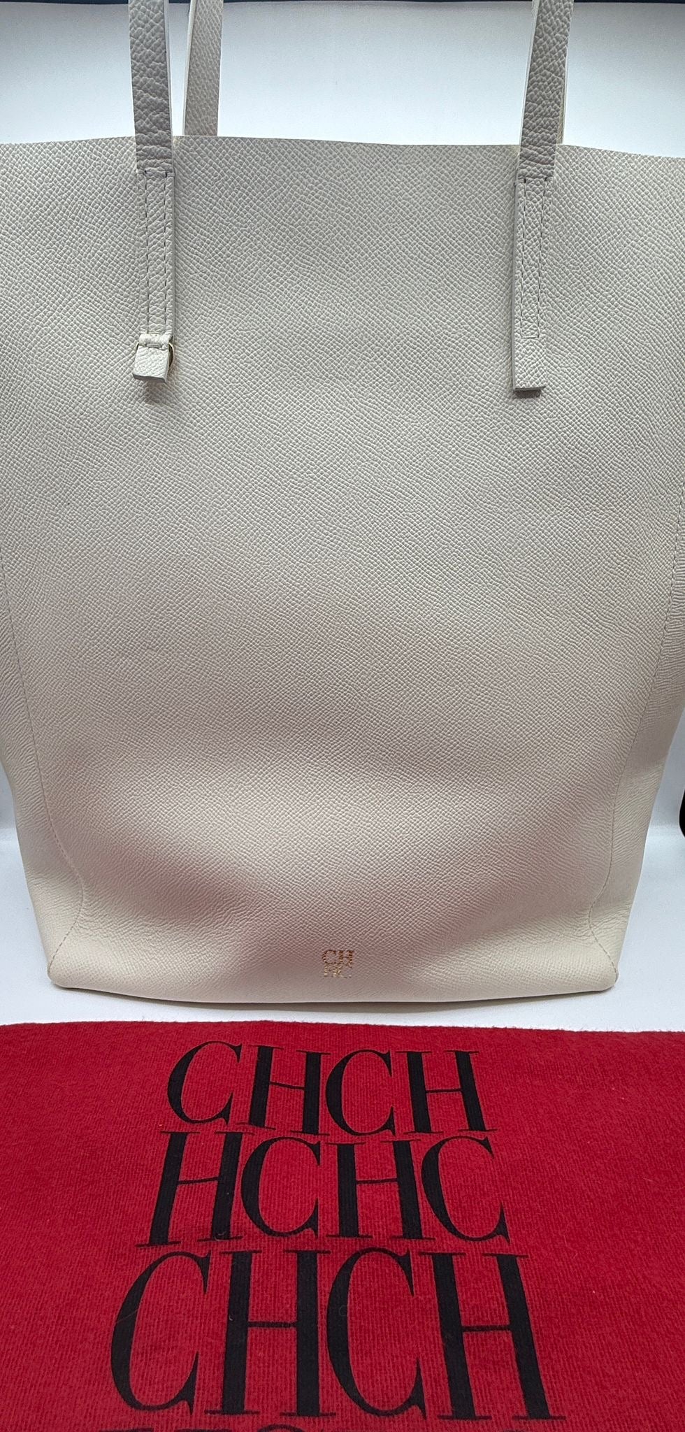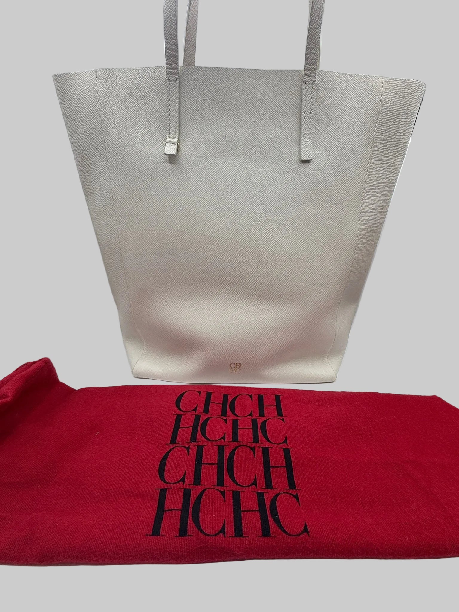 The Carolina Herrera Insignia Tote Bag is an elegant and versatile luxury accessory, crafted in an off-white leather finish that offers timeless appeal. Designed with clean lines and a structured silhouette, the tote features the brand’s signature Insignia detailing, adding a subtle yet recognisable touch of refinement. The spacious interior is ideal for daily use, comfortably accommodating essentials, while sturdy top handles ensure comfortable wear either in hand or over the arm. Finished with quality hardware and meticulous stitching, this tote reflects understated sophistication suitable for both day and professional settings.