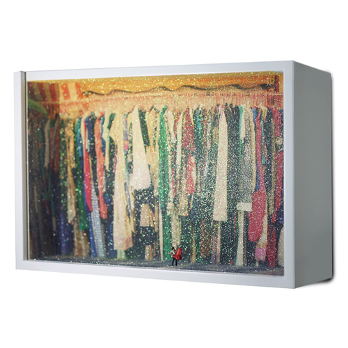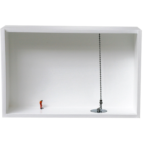 Diorama heaven! The boxes have been a unique platform for my flow of ideas – from the irrepressible human desire to create meaning, to capturing the silliness of life and exploring existential feelings about what it means to be alive. Running through these ideas is a common theme – that opposites can co-exist. Fear and bravery, absurdity and meaning, inside and out, big and small, epic and insignificant. Where they intersect is the place of empathy, mystery and art.