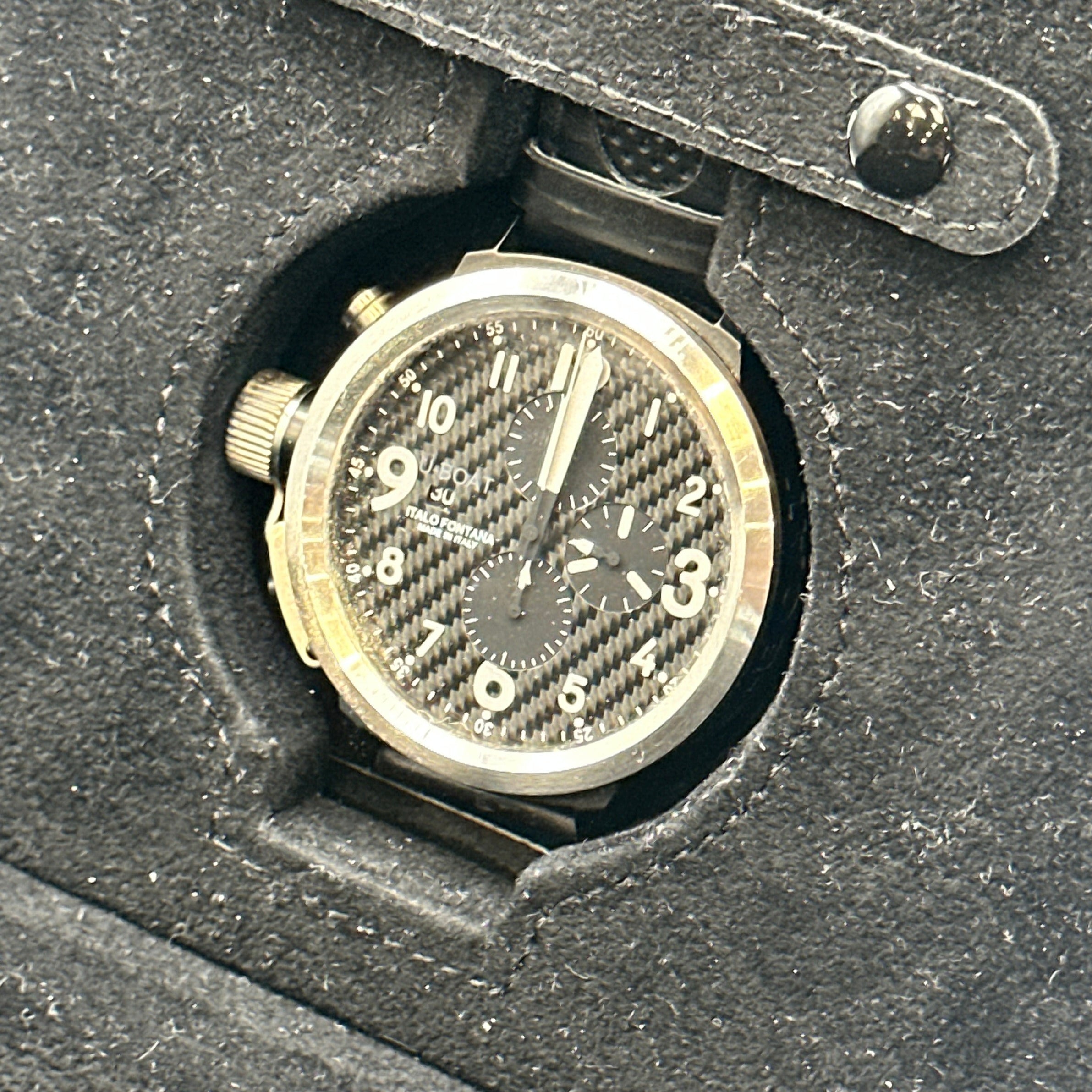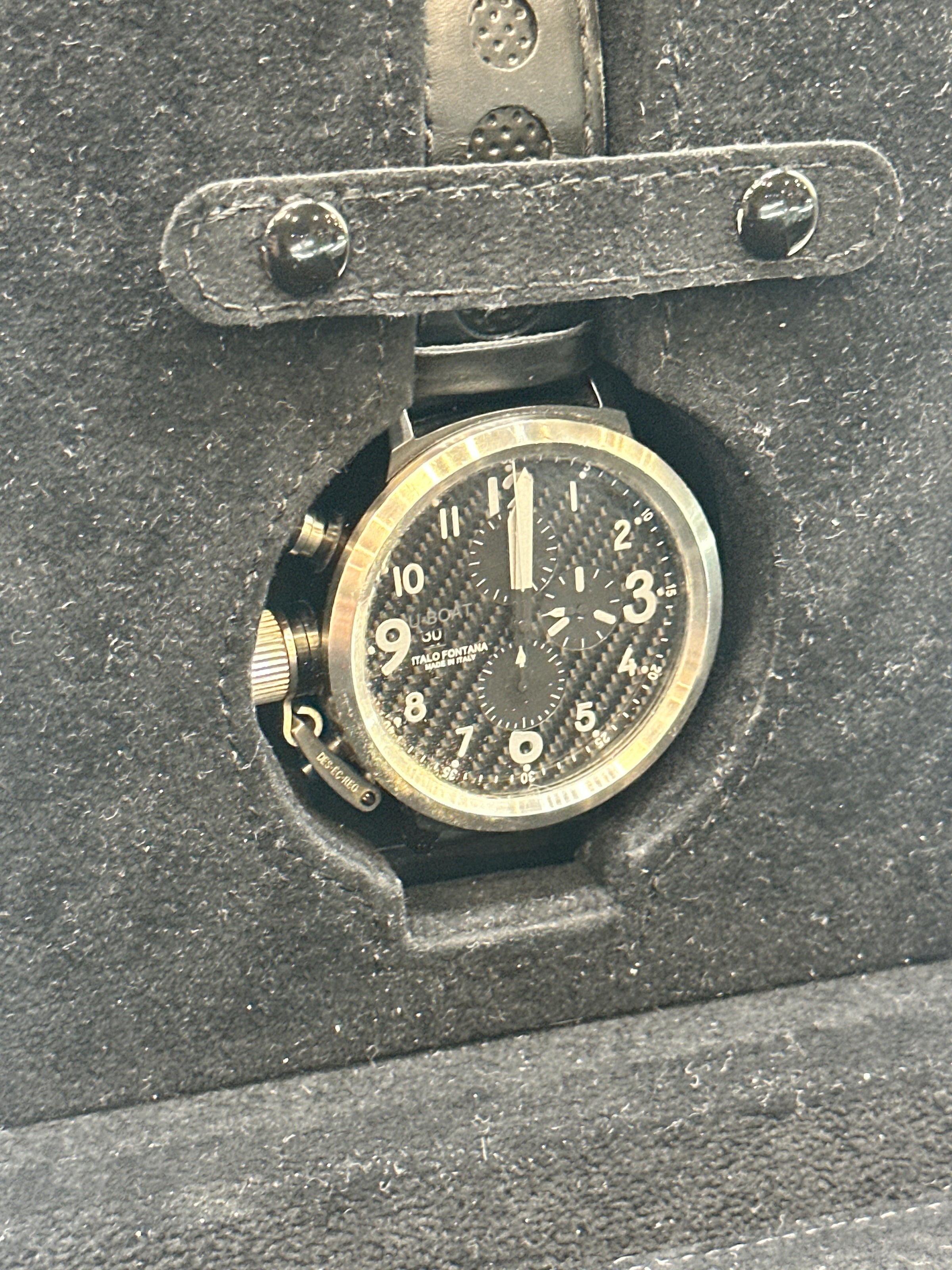 All items have been inspected for authenticity. As this is a second-hand product, it may show signs of wear. When purchasing a vintage item like the U-Boat Carbon Flight Deck B45-08, buyers should recognise that the item is likely to require careful maintenance to preserve its condition and functionality.