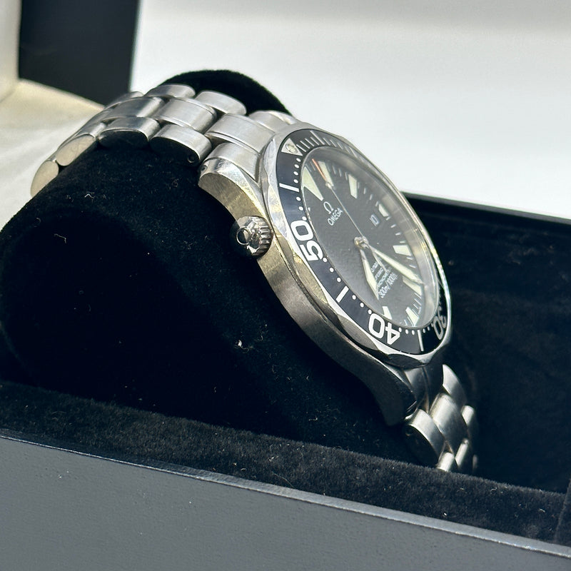 With 300 meters of water resistance, a sapphire crystal, and a robust stainless steel bracelet with a secure clasp and diver-extension, this Seamaster is a true tool watch with timeless appeal and decades of heritage. Whether on land or at sea, this model remains a favourite among collectors and diving enthusiasts alike.