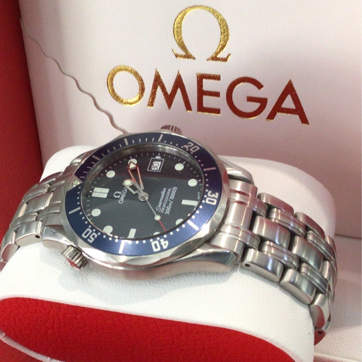 Omega Seamaster Professional 300 M Quartz in blue bezel: