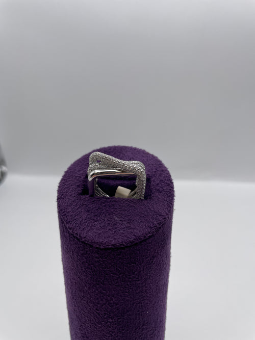 APM Monaco White Crossed Rectangle Ring - White Silver