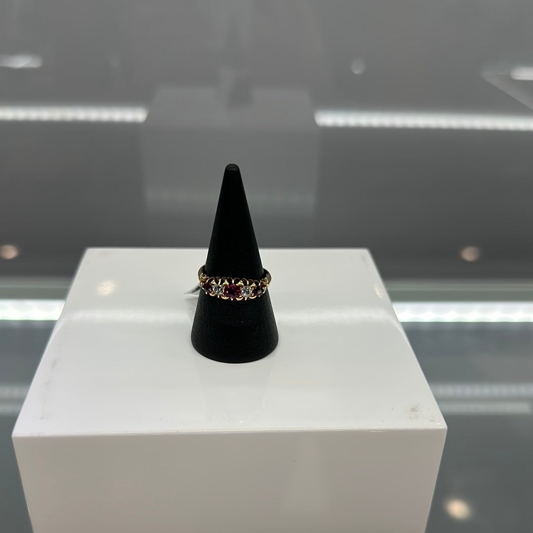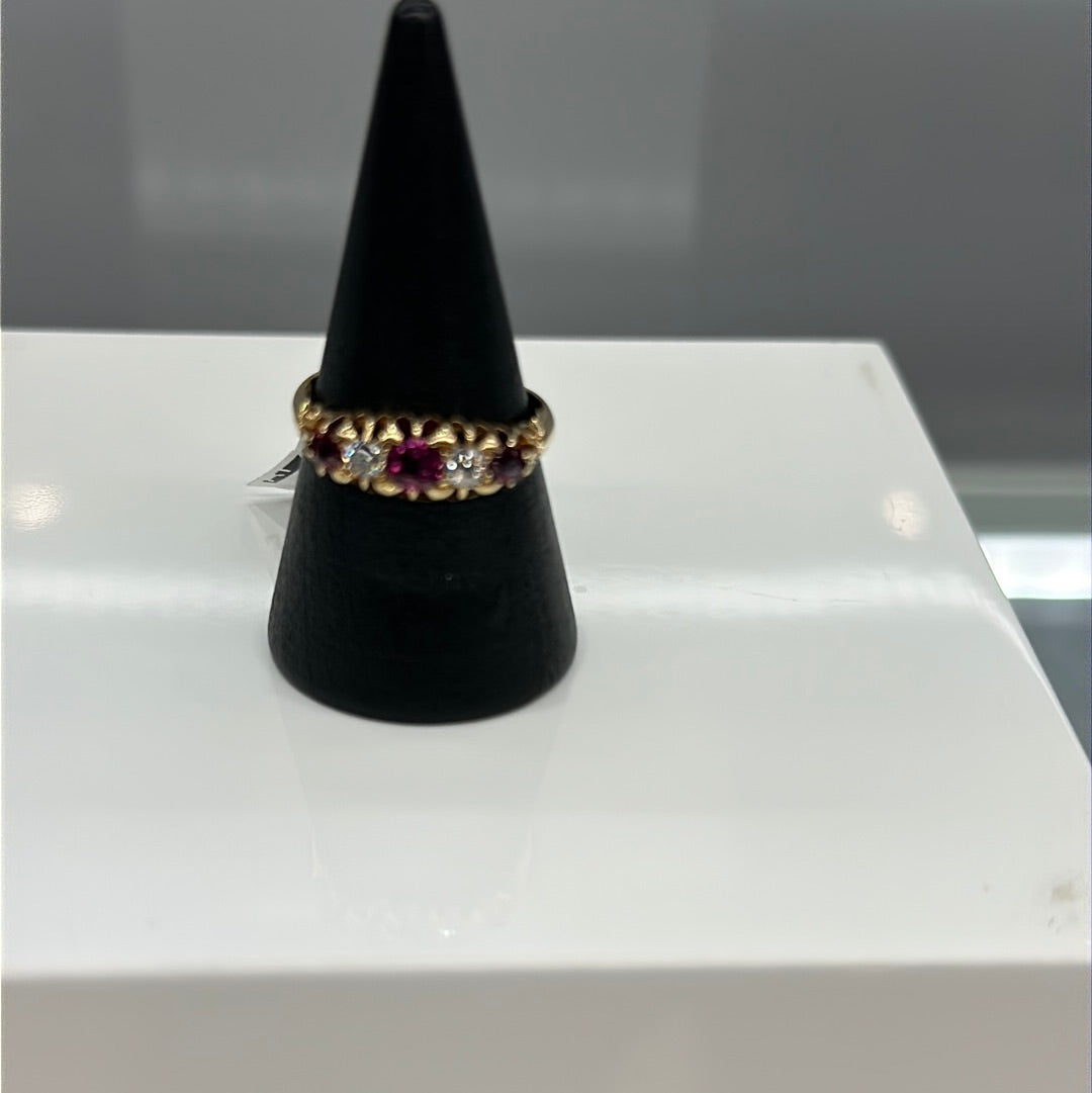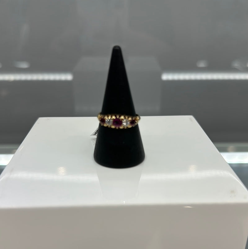 Ladies 18ct Yellow Gold Half Eternity Style Ruby And Diamond Ring Set With 3 Brilliant Cut Rubies And 2 Brilliant Cut Diamonds In A Claw Setting