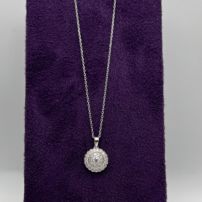 9ct White Gold Diamond Cluster Pendant