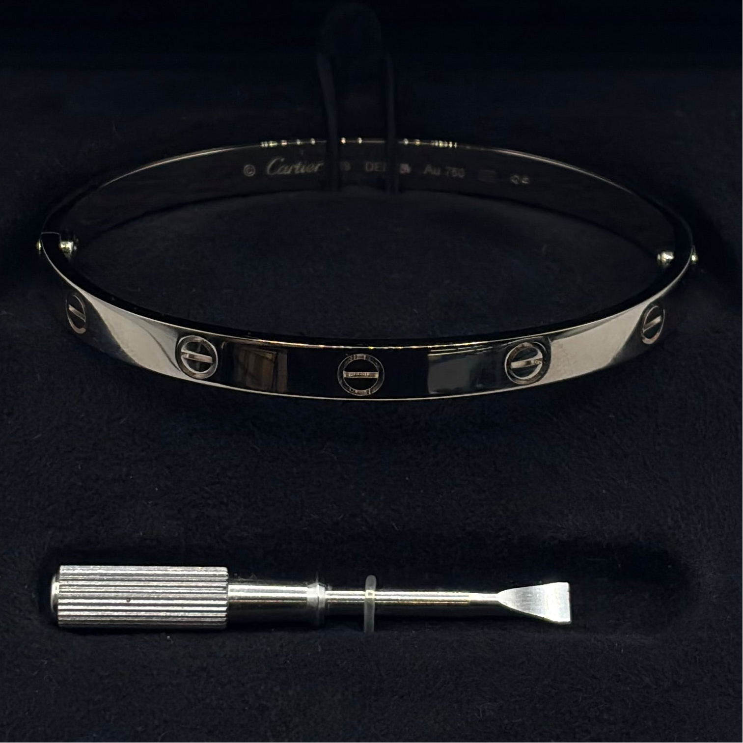 Cartier White Gold LOVE bracelet, size 19, full set, Cartier polished 2025