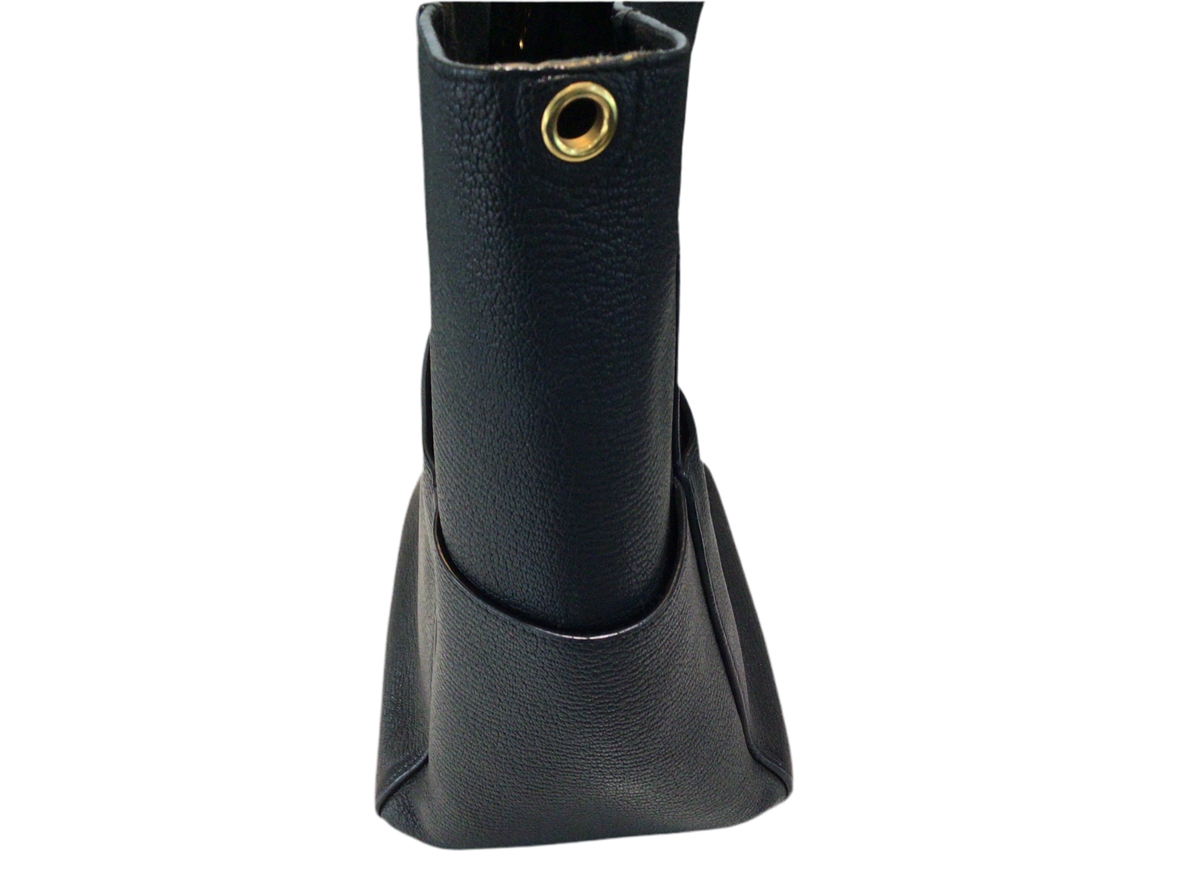 Material: Crafted from luxurious grained black calfskin leather, offering both durability and a refined aesthetic.