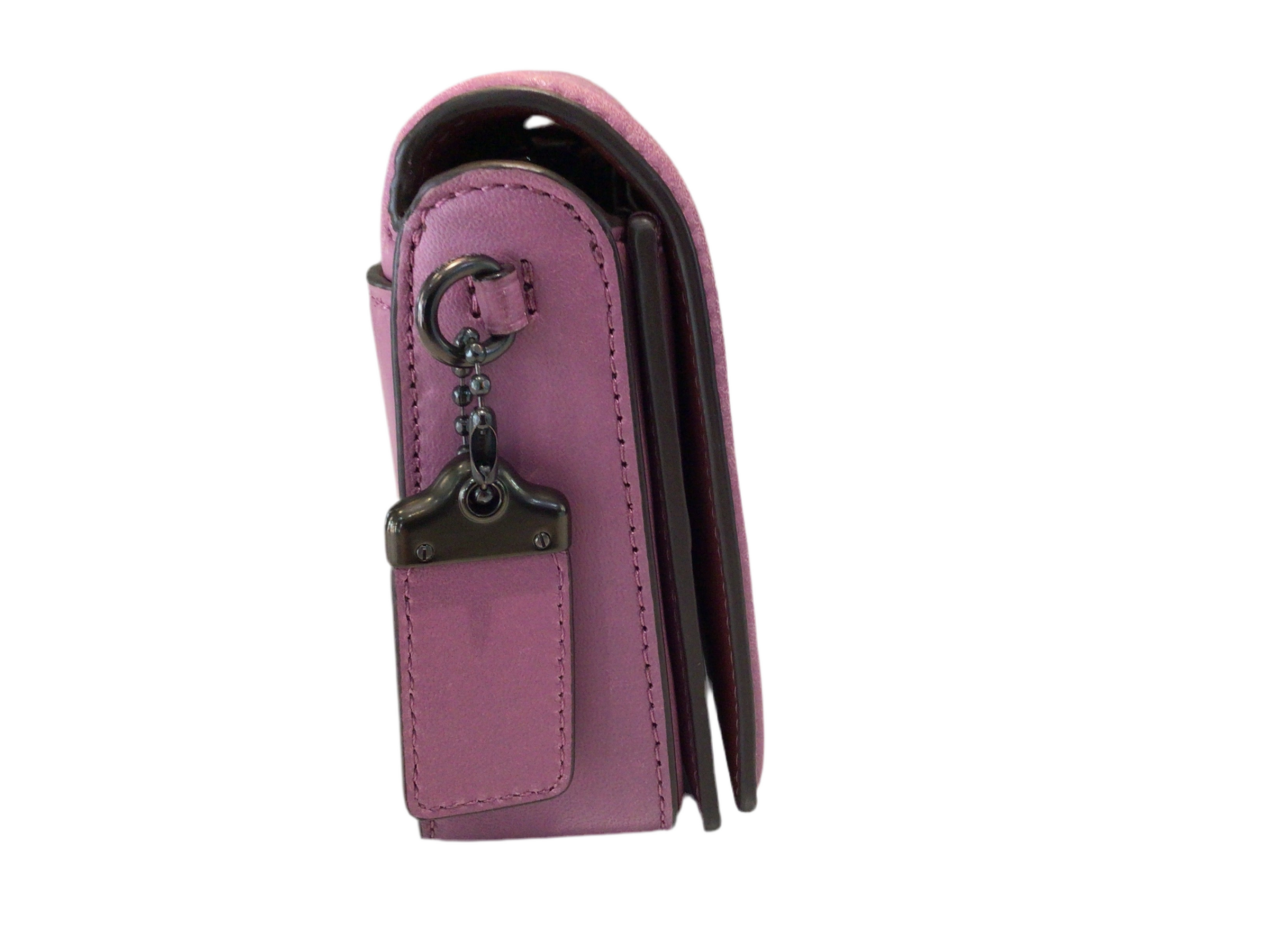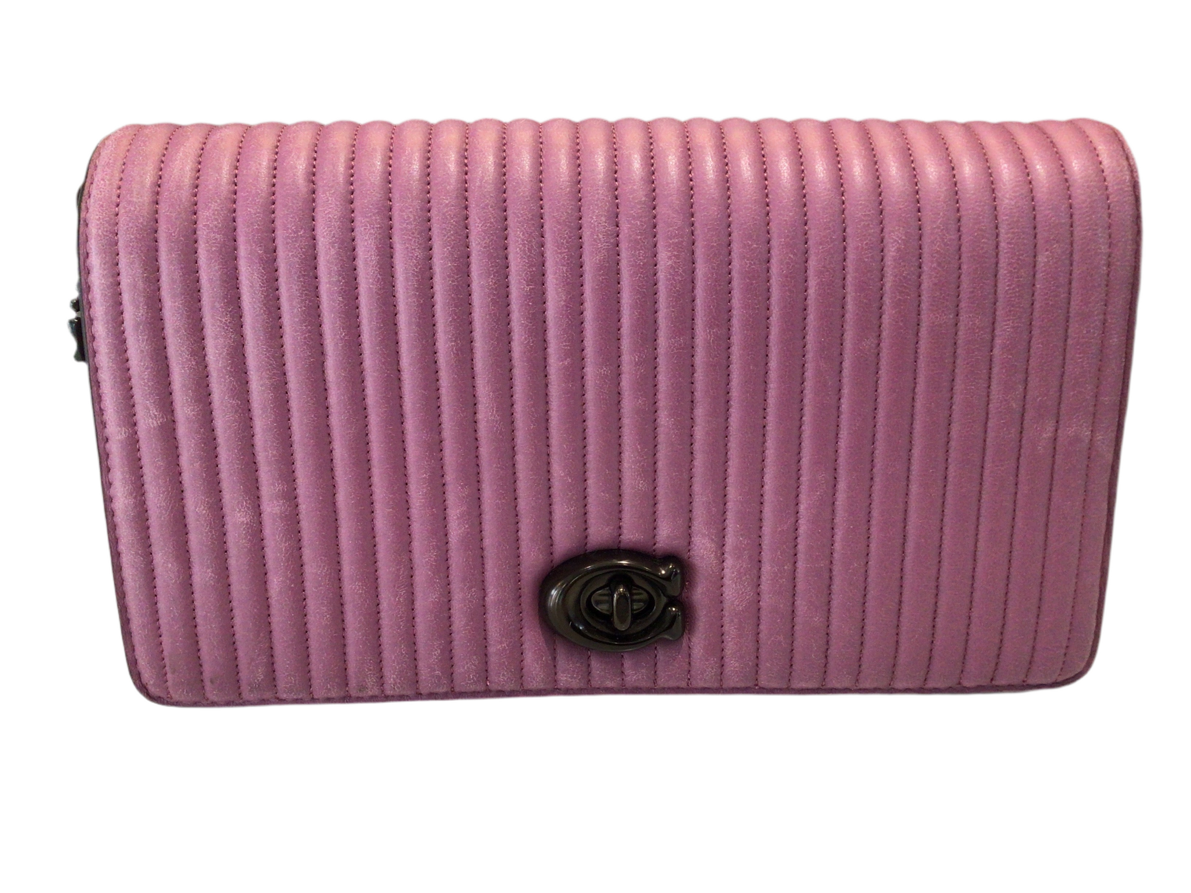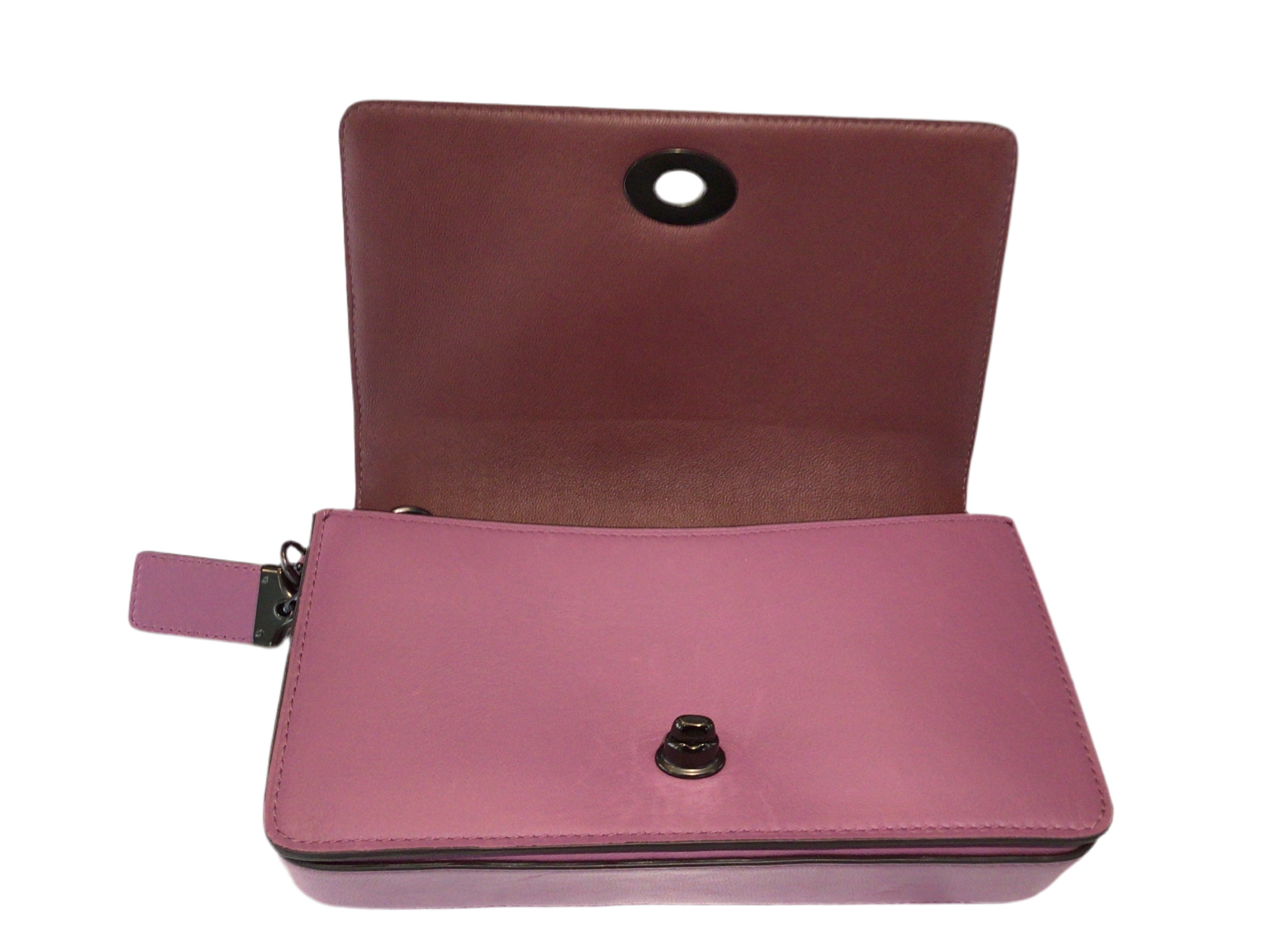 Materials & Design: Crafted from luxurious glove‑tanned leather in the signature “Primrose” shade—a delicate mauve-pink—with metallic‑pink interior lining. Features Coach’s iconic turn‑lock closure, quilted exterior, and gunmetal hardware.