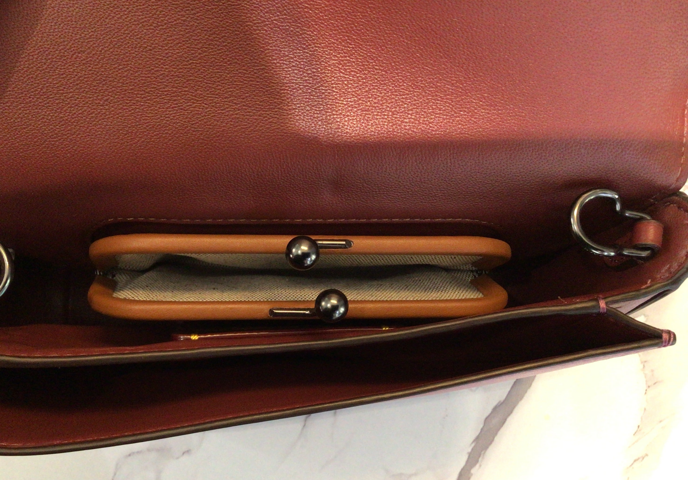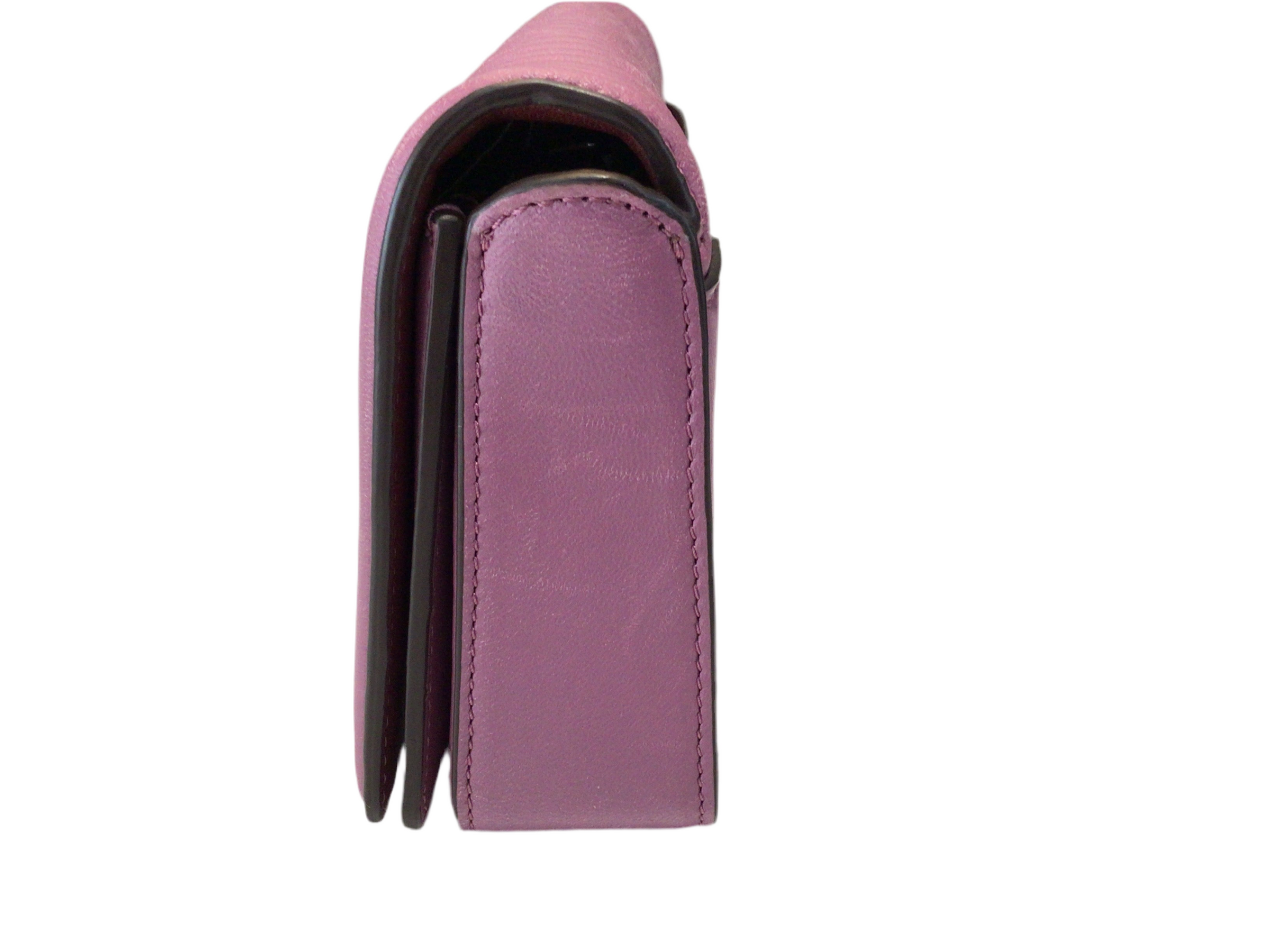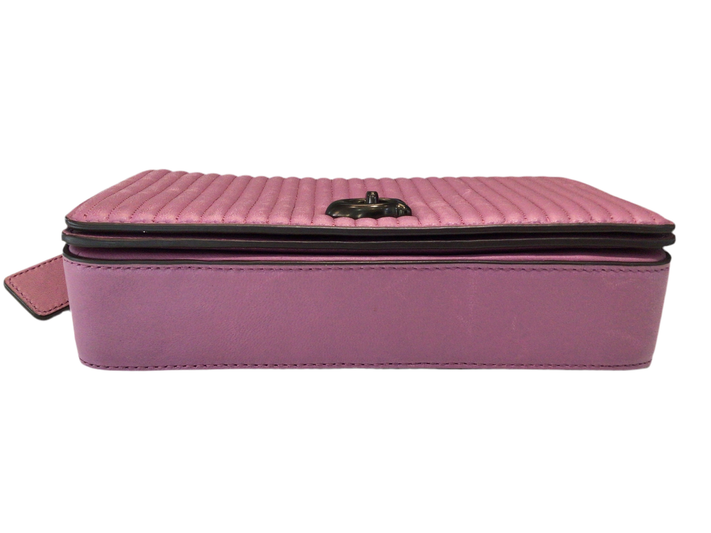 Materials & Design: Crafted from luxurious glove‑tanned leather in the signature “Primrose” shade—a delicate mauve-pink—with metallic‑pink interior lining. Features Coach’s iconic turn‑lock closure, quilted exterior, and gunmetal hardware.