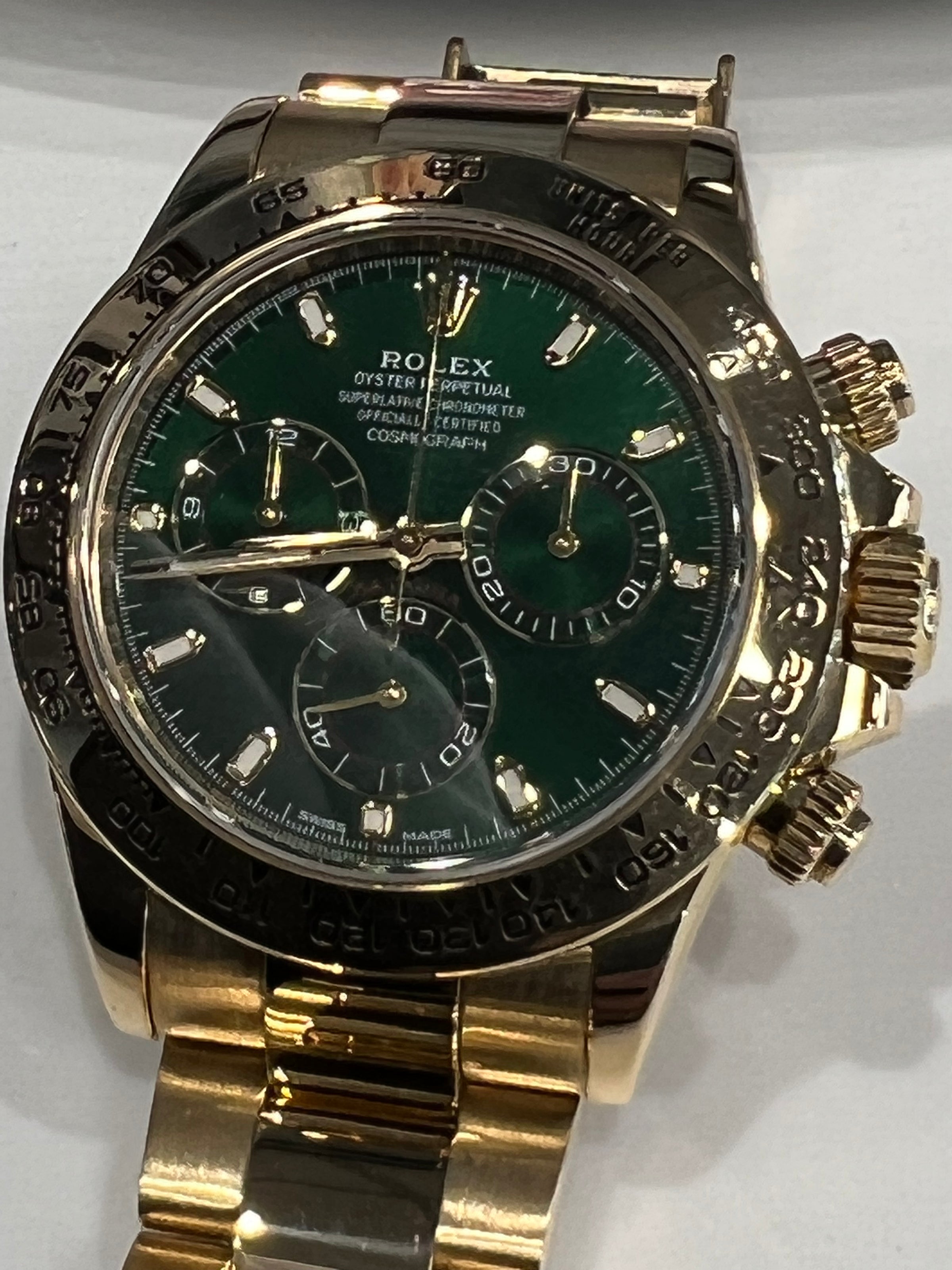 Rolex Daytona Olive Face Solid 18ct Yellow Gold