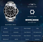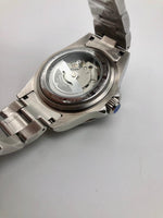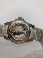 Automatic Dive watch 316L Steel Sapphire Crystal exhibition Case-back. This is a brand new watch, made by an independent company Dimirsen. The watch is stainless steel with a sapphire Crystal glass. Water resistance to 20 ATM’s . The design is based on a Rolex, but this is not a Rolex, but an affordable alternative perhaps for those who are considering investing in a Rolex, but want to get comfortable with the colours, weight and size of a Rolex.