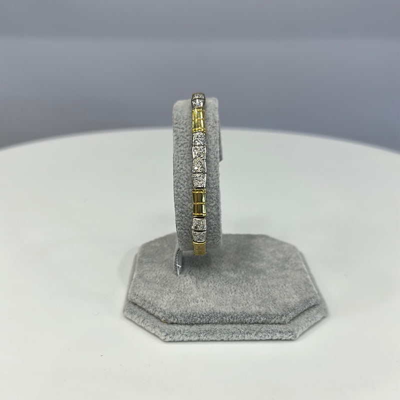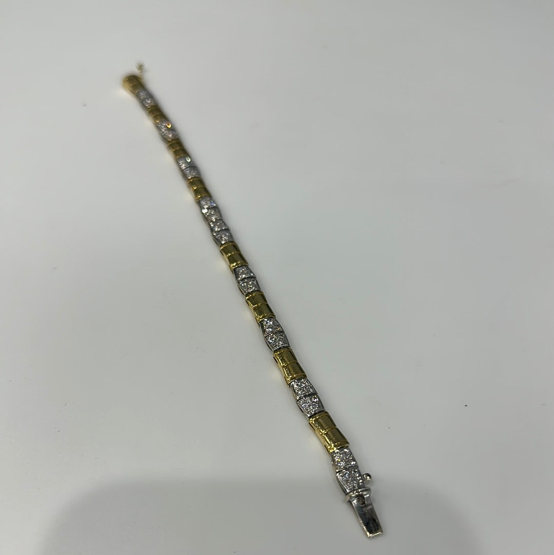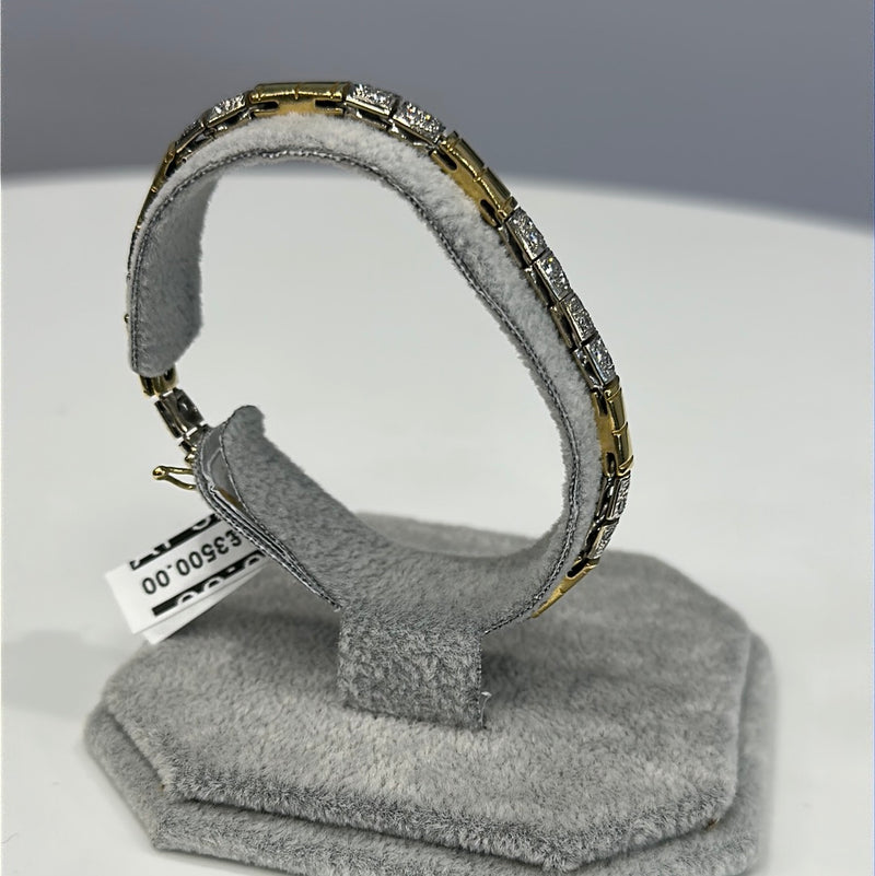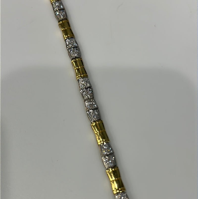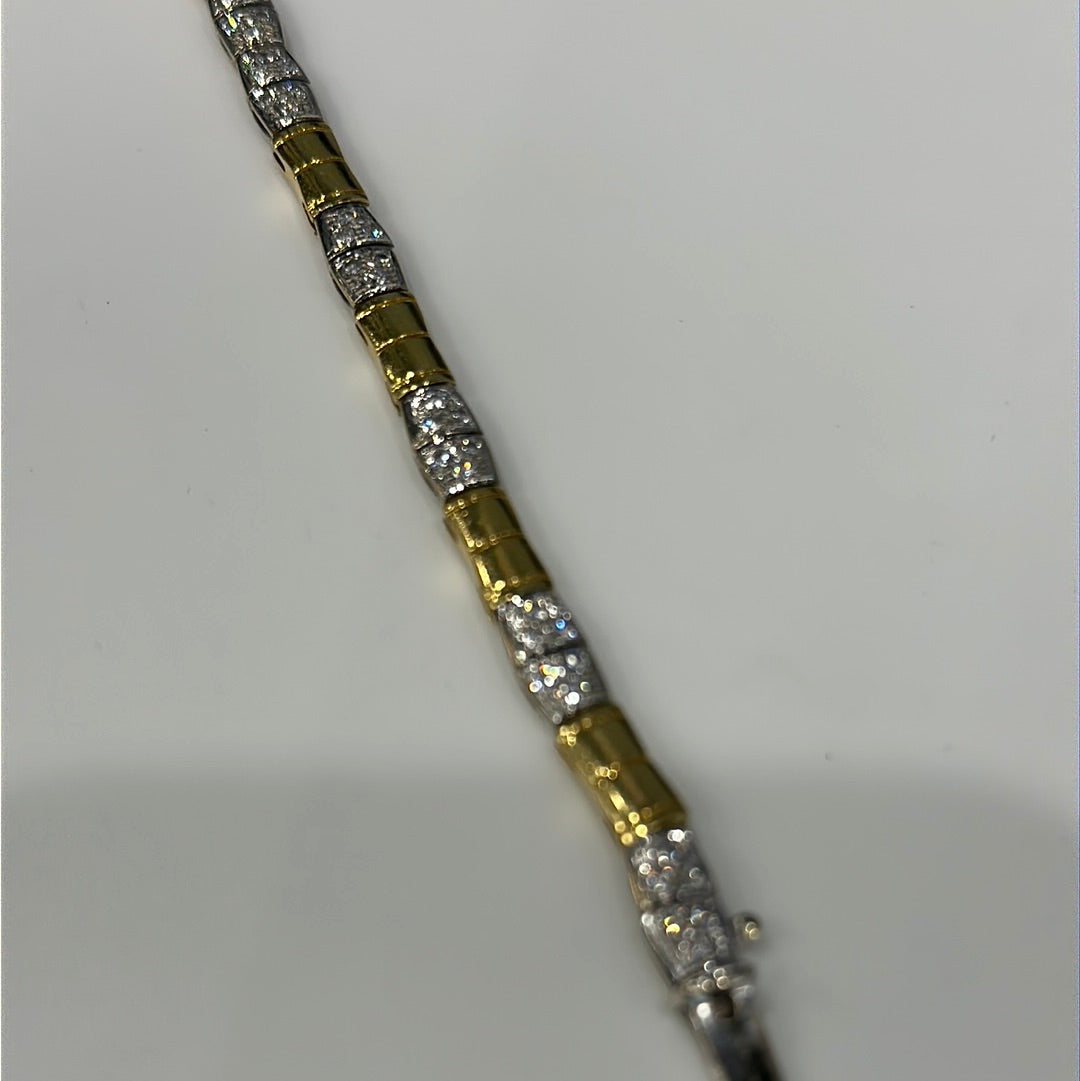 18ct White And Yellow Gold Diamond Bracelet Set With Brilliant Cut Diamonds Pavie Set In 18 Small Square Sections In-between Yellow Gold Squares