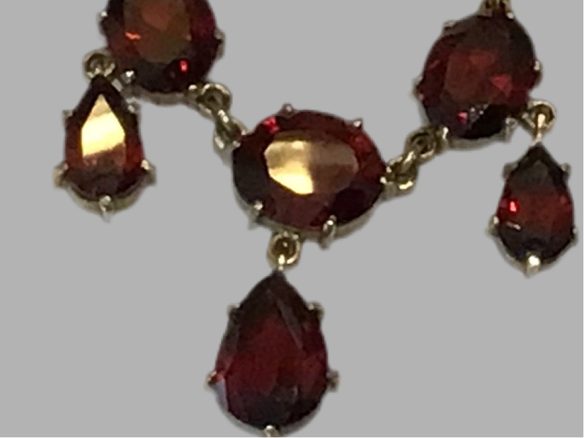 - Number of Garnets: Ten oval-cut garnet stones