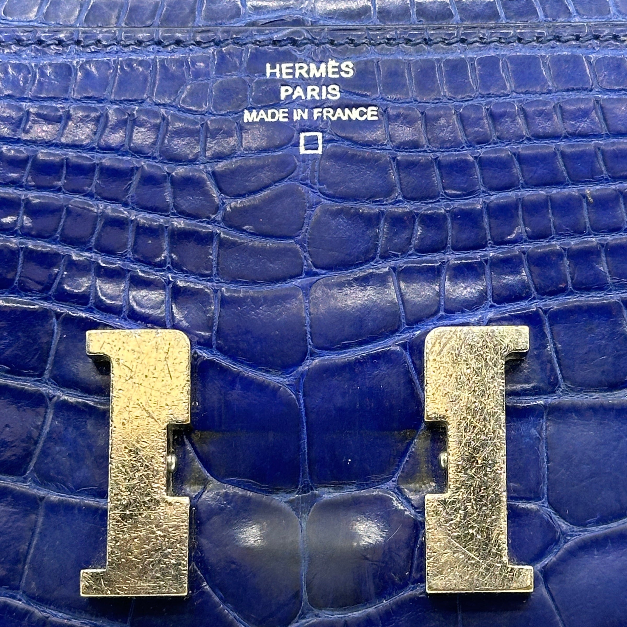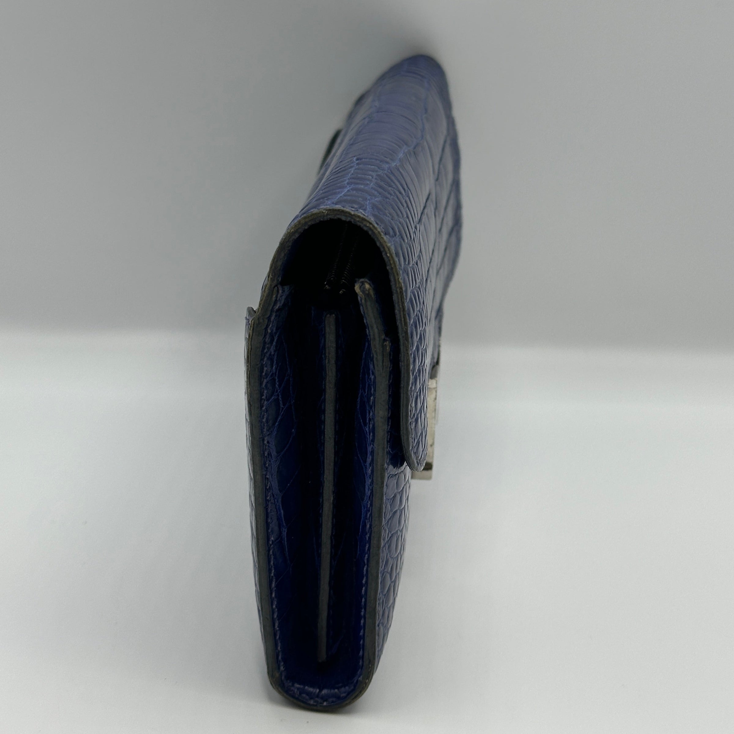 Material & design: Exquisite blue Mississippiensis alligator leather with a glossy finish. Fitted with a striking palladium‑tone ‘H’ clasp that seamlessly secures the flap.