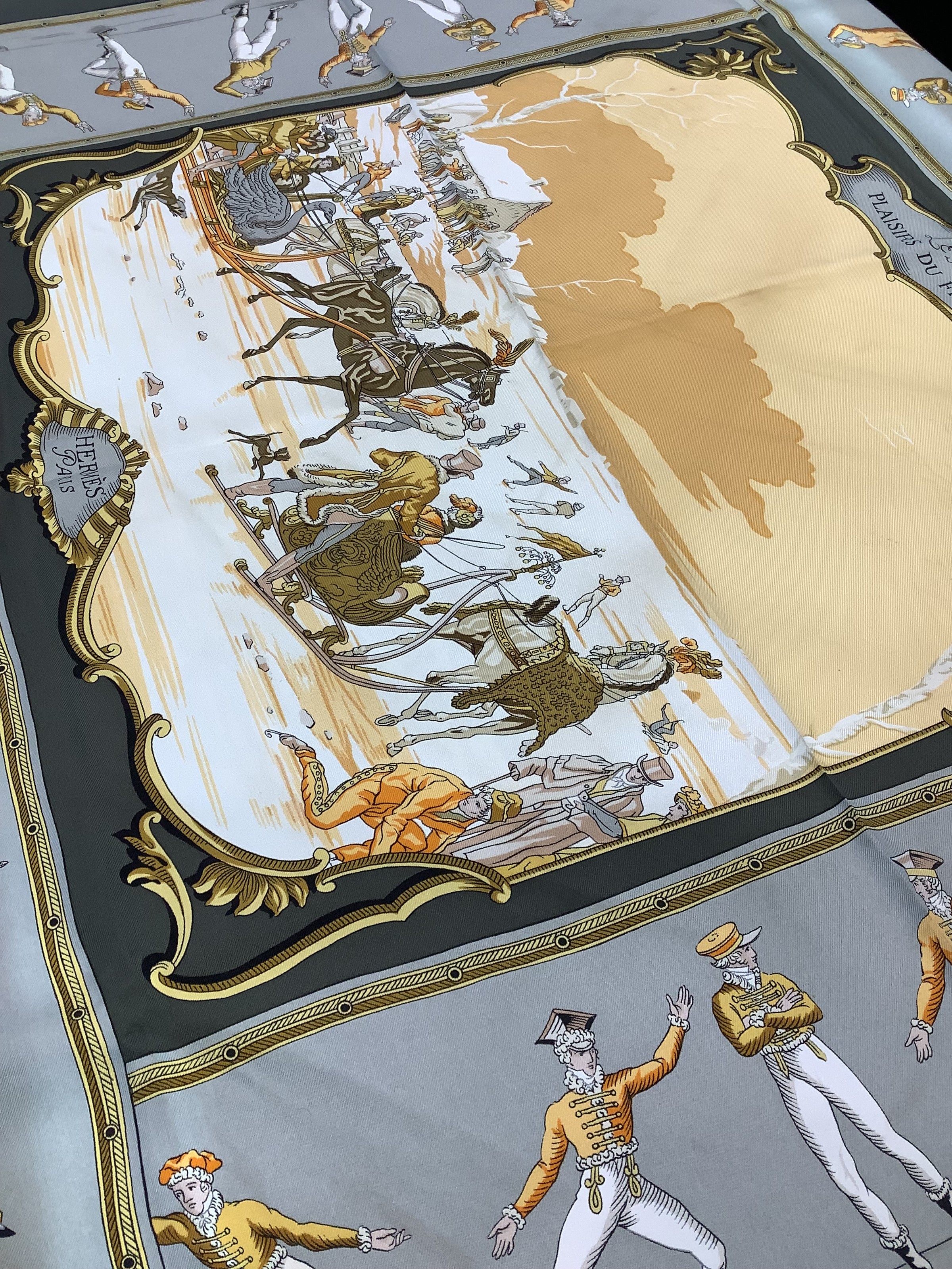 All items have been inspected for authenticity. As a pre-owned / vintage scarf, this piece may show delicate signs of use — faint impressions, minor edge wear, slight colour variation in the print, or tiny pulls in the silk. Such vintage artworks require gentle care (silk-safe dry cleaning, careful storage, avoiding creases) to maintain their brilliance over time.