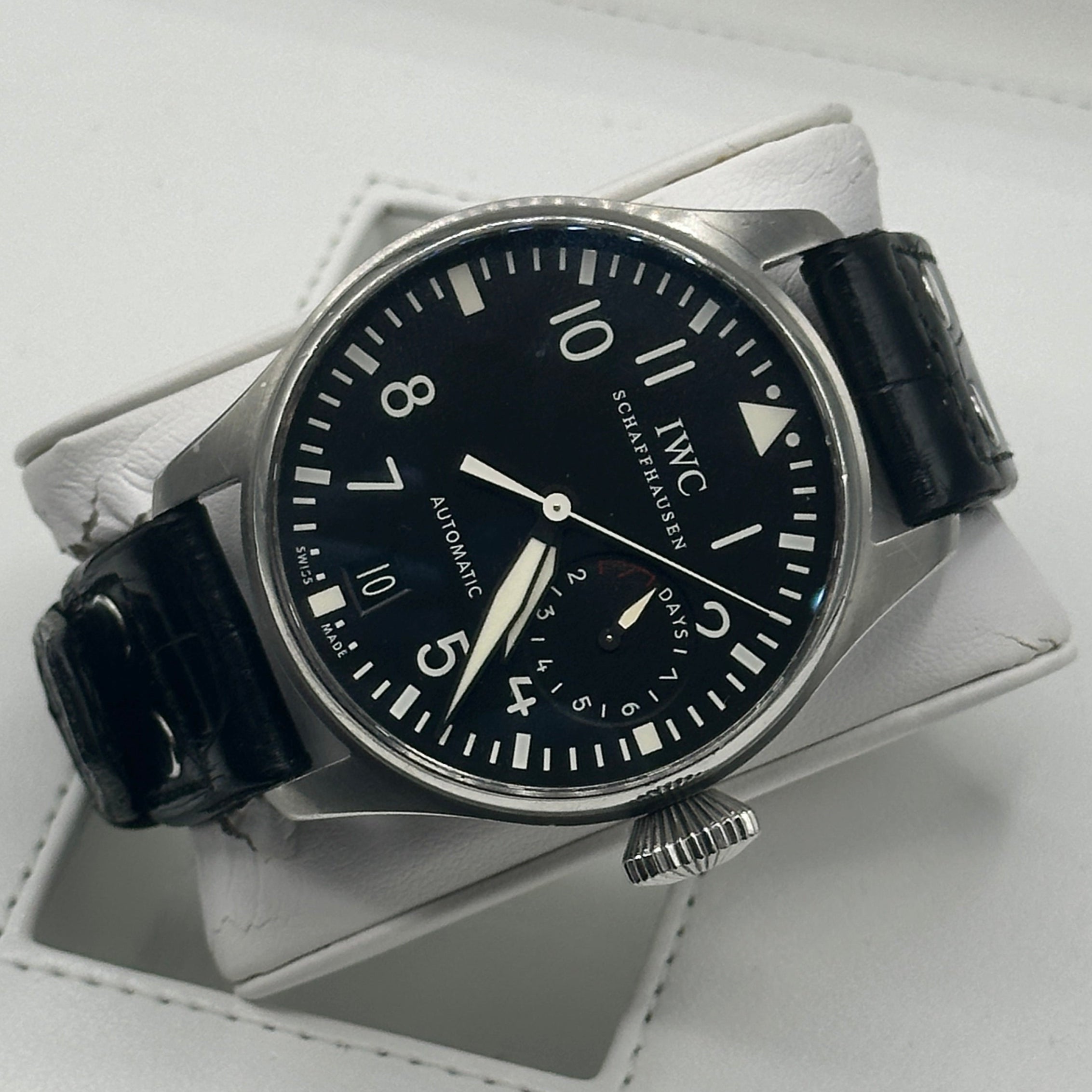 Founded in 1868, IWC Schaffhausen is celebrated for combining technical engineering with elegant design. The Big Pilot traces its roots to the 1940s military B‑Uhr watches, with the revival of the design taking place in 2002.