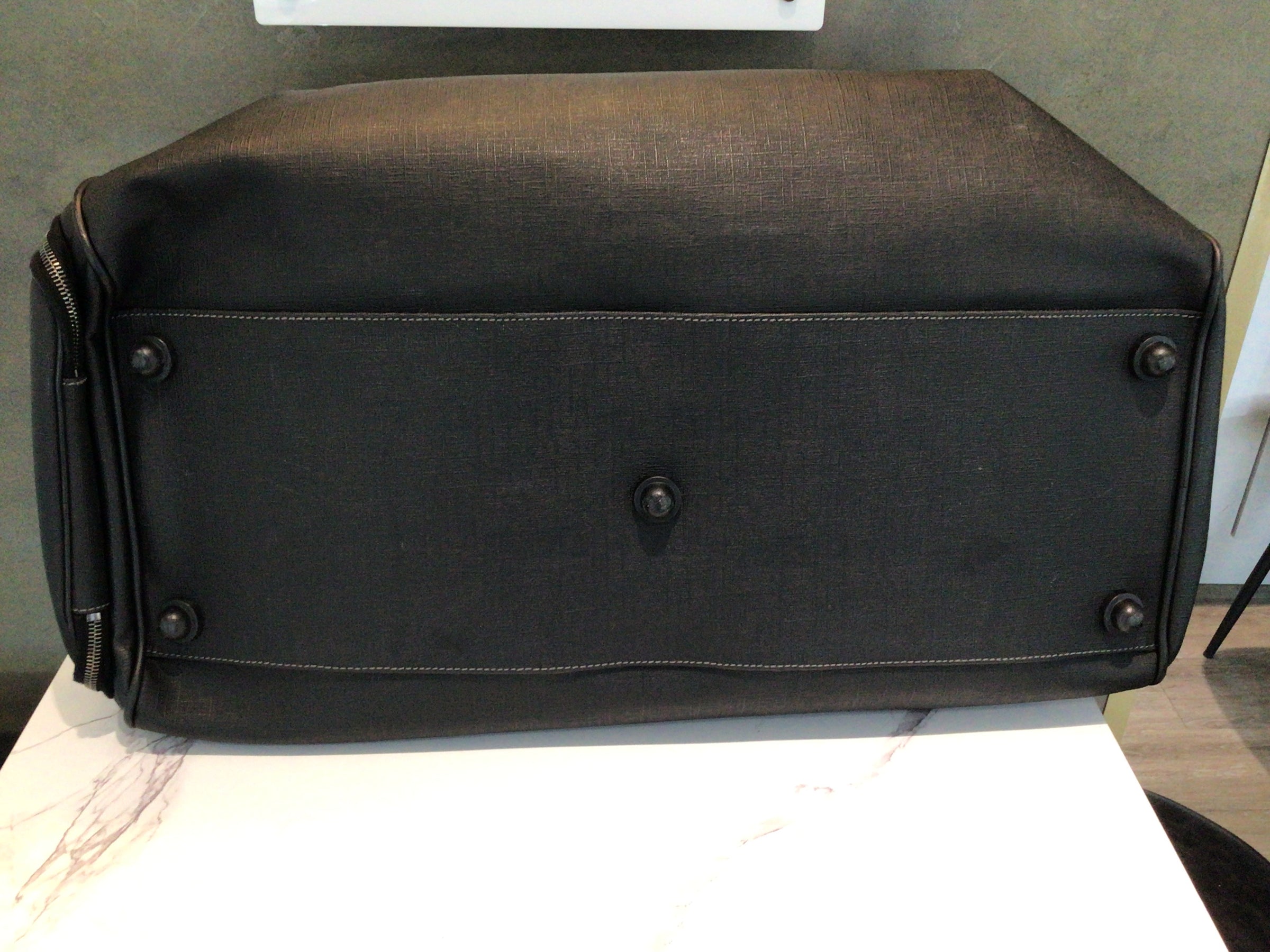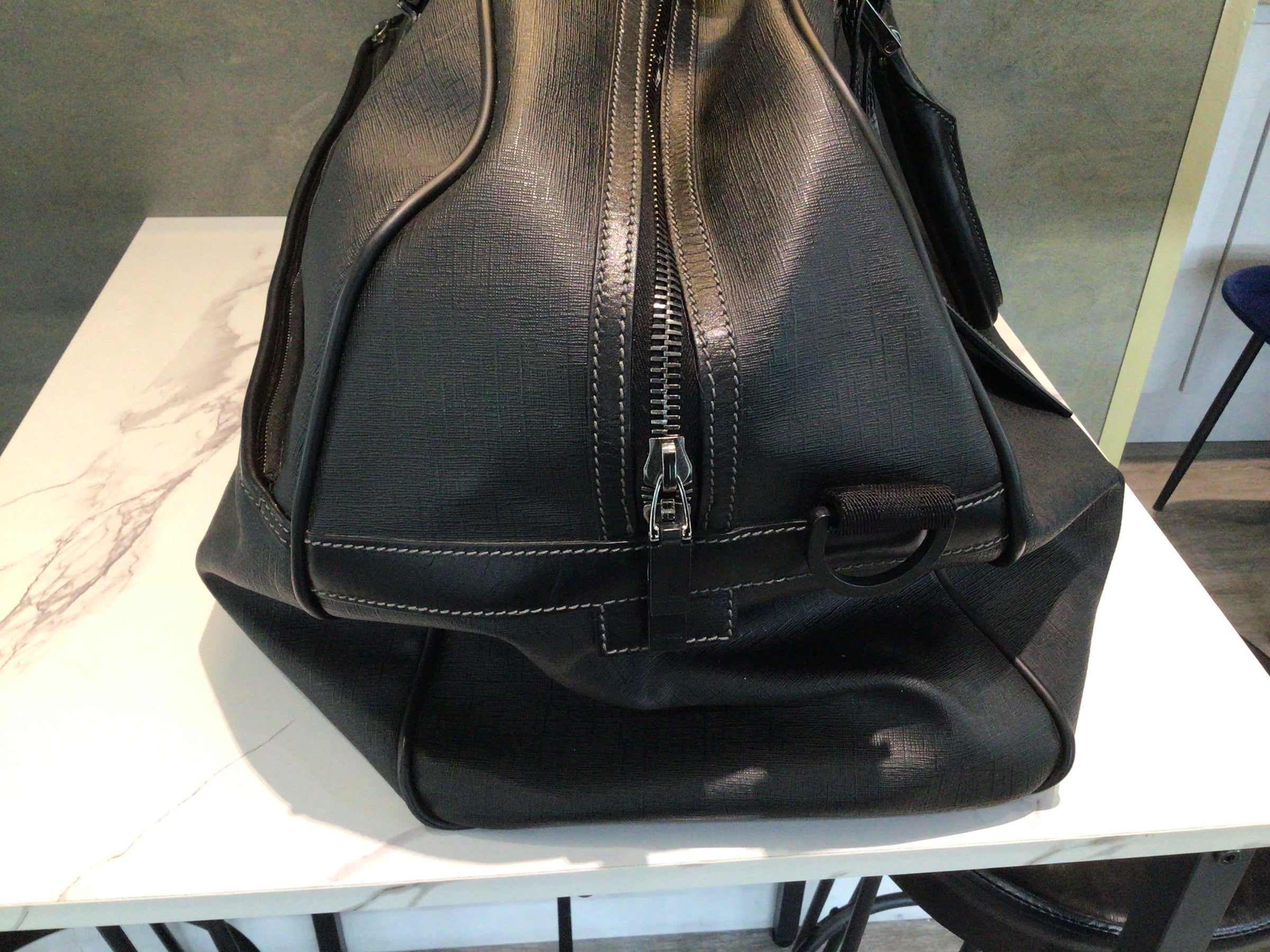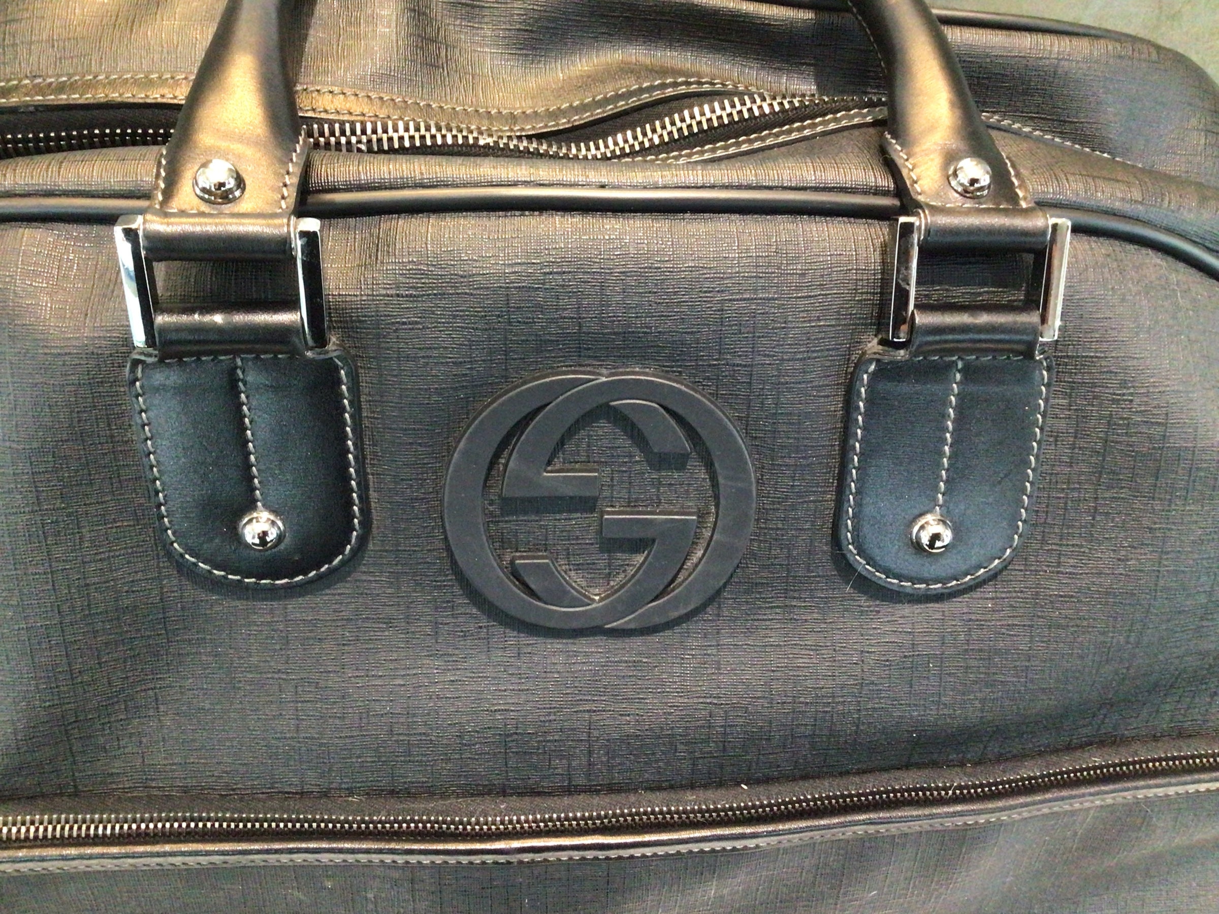 Materials and Design: Crafted from durable black Saffiano leather, this duffel bag features the iconic interlocking GG logo, symbolizing Gucci's rich heritage. The Saffiano leather provides a textured finish, enhancing both aesthetics and resilience.