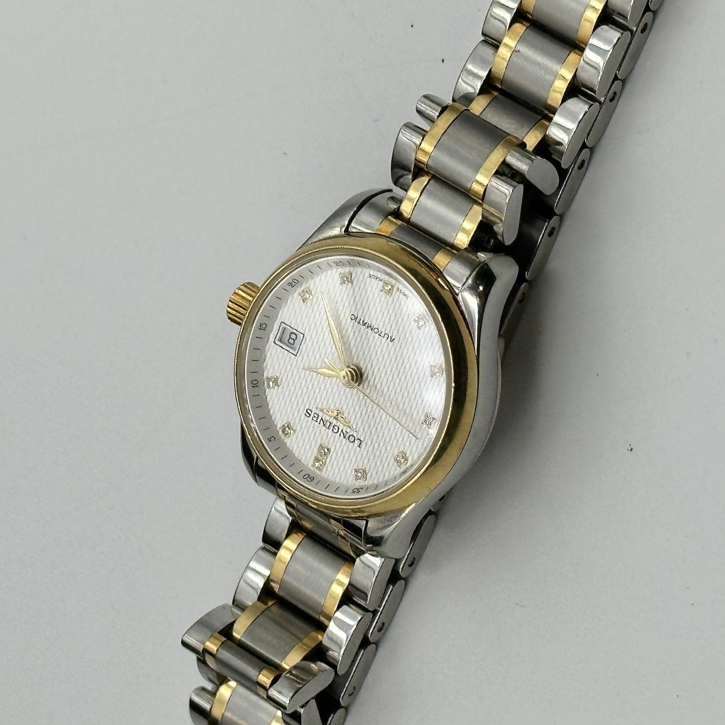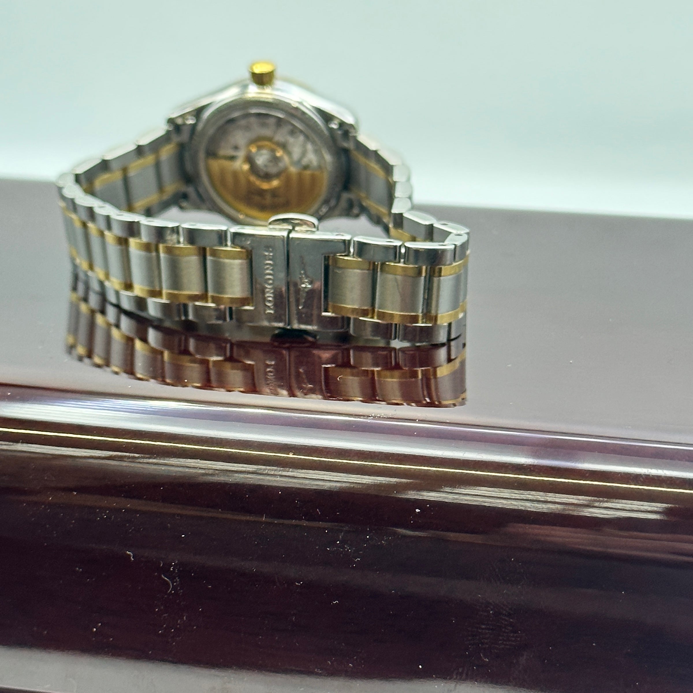 Materials & Design: The Longines Master Collection Automatic L2.128.5 series showcases a harmonious blend of stainless steel and 18-karat gold. This model features a 25.50 mm case, available with various dial options, including white mother-of-pearl and gilt. The bracelet combines stainless steel with 18-karat yellow gold, enhancing its luxurious appeal.