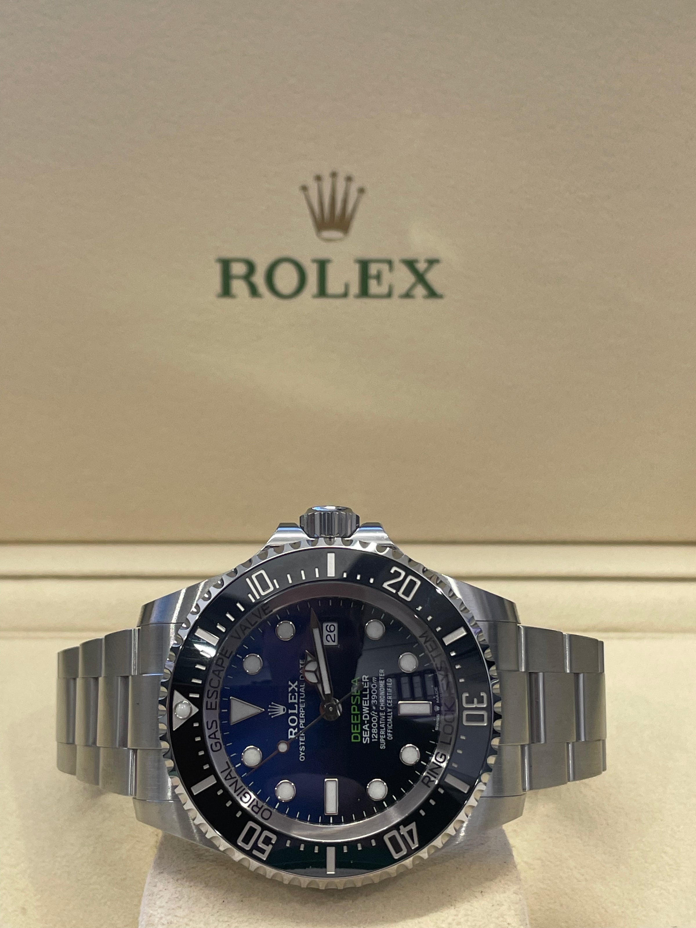 It features a D-blue dial and large luminescent hour markers. Waterproof to a depth of 3,900 metres (12,800 feet) with a unidirectional 60-minute rotatable bezel, the Rolex Deepsea is amongst the ultra-resistant divers’ watches engineered by Rolex for deep-sea exploration.