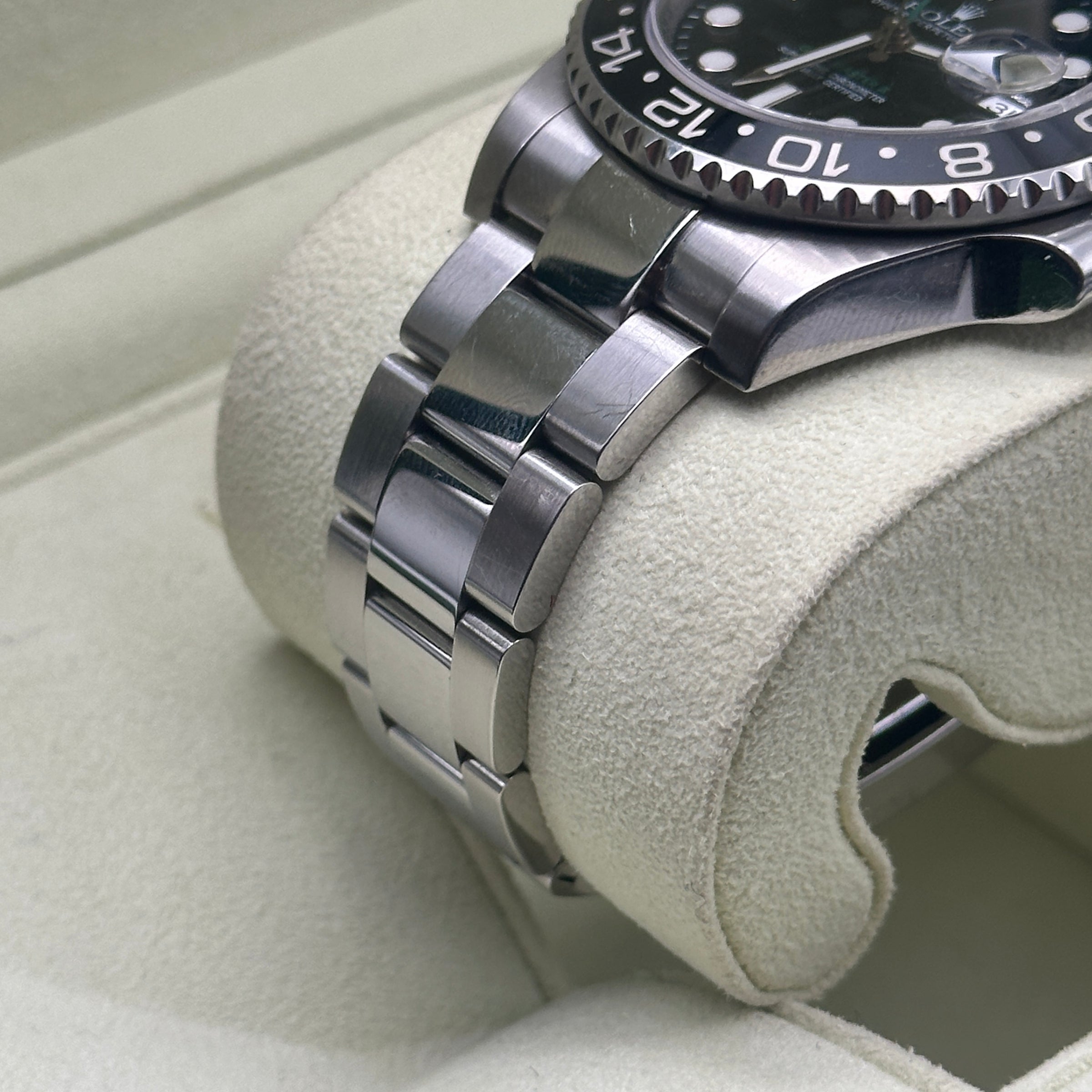 The reference 16710 was produced from 1989 to 2007, superseded by the 116710LN in 2007. However, some later serial‑numbered examples date into 2011 production. The all‑black bezel version (LN) was the final traditional aluminium variant before ceramic inserts became standard.