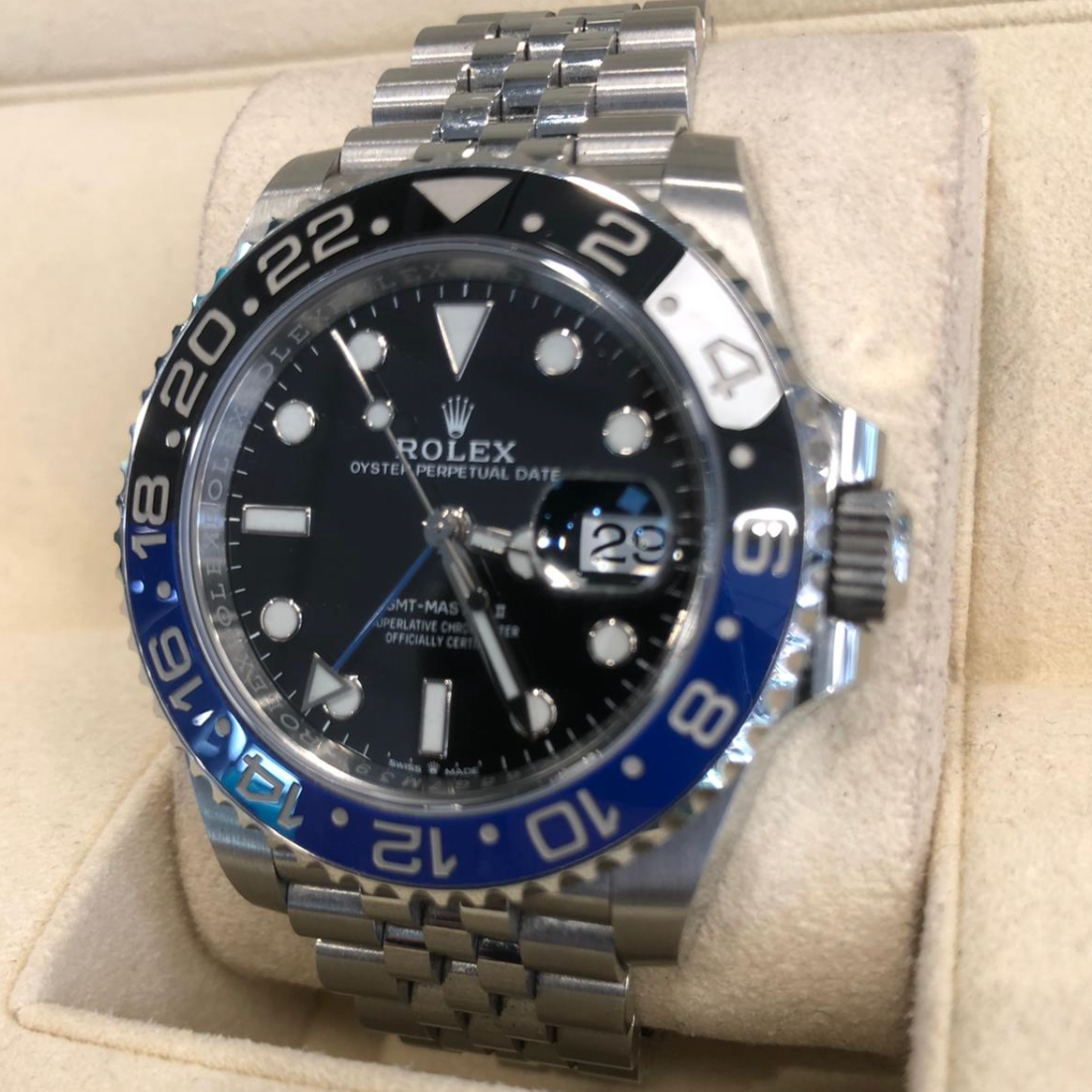 This Rolex GMT Master II Batgirl is a 2019 model stainless steel sports watch on a jubilee bracelet. This watch is in great condition with little sign of wear and comes as a full set with original box and paperwork.