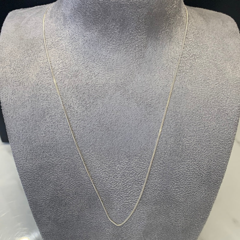 This classic 18-inch chain is crafted in solid sterling silver, offering a timeless and versatile piece suitable for daily wear or layering with other jewellery. The chain features a sleek, polished finish and is typically offered in styles such as cable, curb, or box link – ideal for both pendants and standalone wear. With its medium length, the chain sits elegantly at the collarbone, making it perfect for a refined and understated look. Secured with a reliable spring ring or lobster clasp, it ensures both ease of wear and durability.