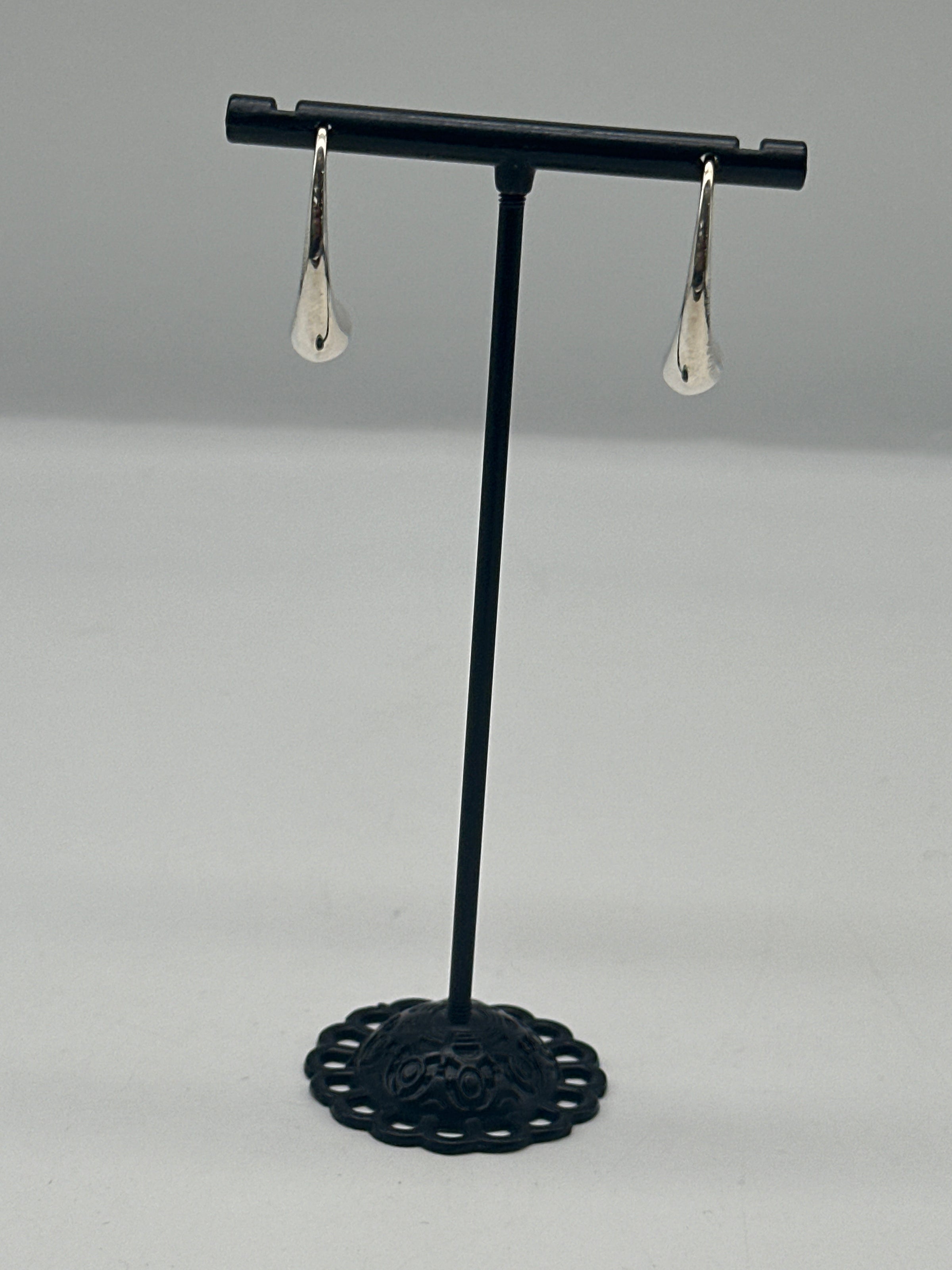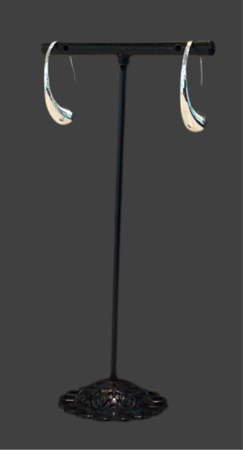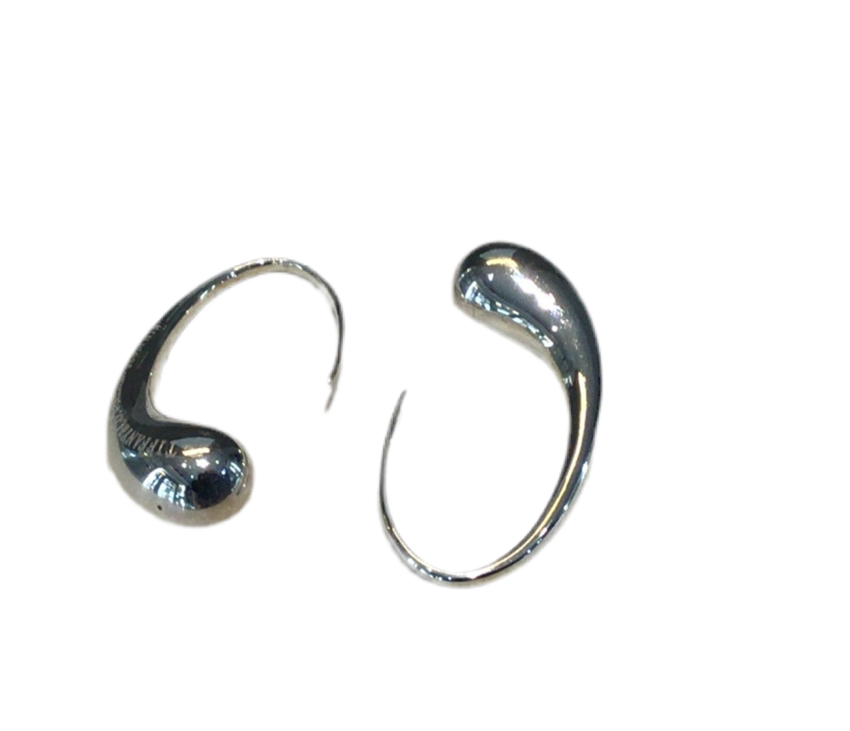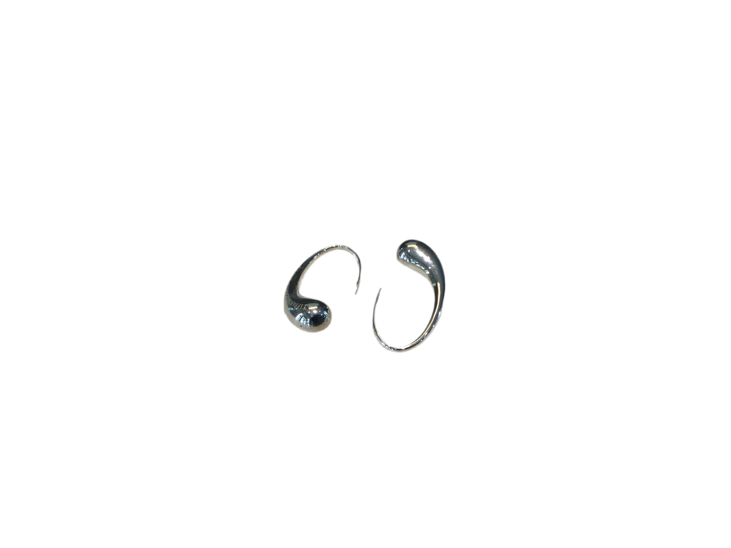 Materials: Crafted in lustrous sterling silver, fashioned into graceful teardrop-shaped hoops—an emblem of refined organic elegance.