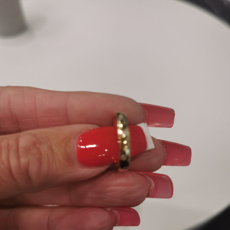 18ct Yellow Hand-made Diamond Set Wedding Band, Court Fit Band Set With Small Brilliant Cut Diamonds Scattered Around The Band