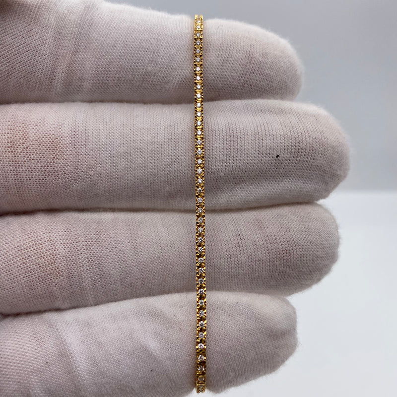 One Ladies 18ct Yellow Gold Diamond Line Bracelet Set With Brilliant Cut Diamonds In A Claw Setting