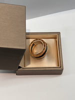 The Bvlgari B.Zero1 Ring is a striking piece crafted from 18ct rose gold, renowned for its warm and luxurious hue. The ring features a distinctive spiral design, symbolising the brand's innovative approach to jewellery design. The polished finish of the rose gold enhances its contemporary aesthetic, making it a standout accessory for both casual and formal occasions. -