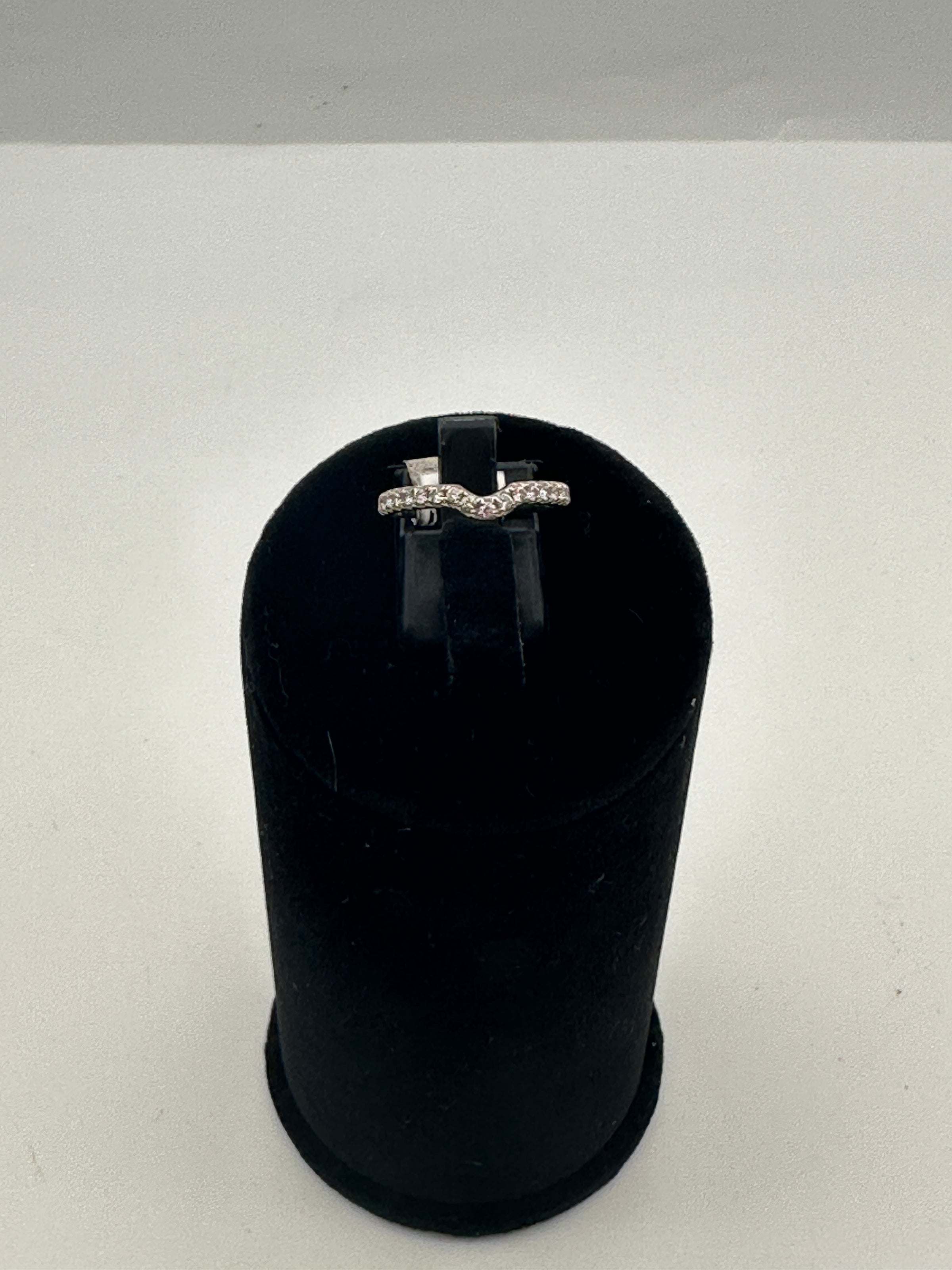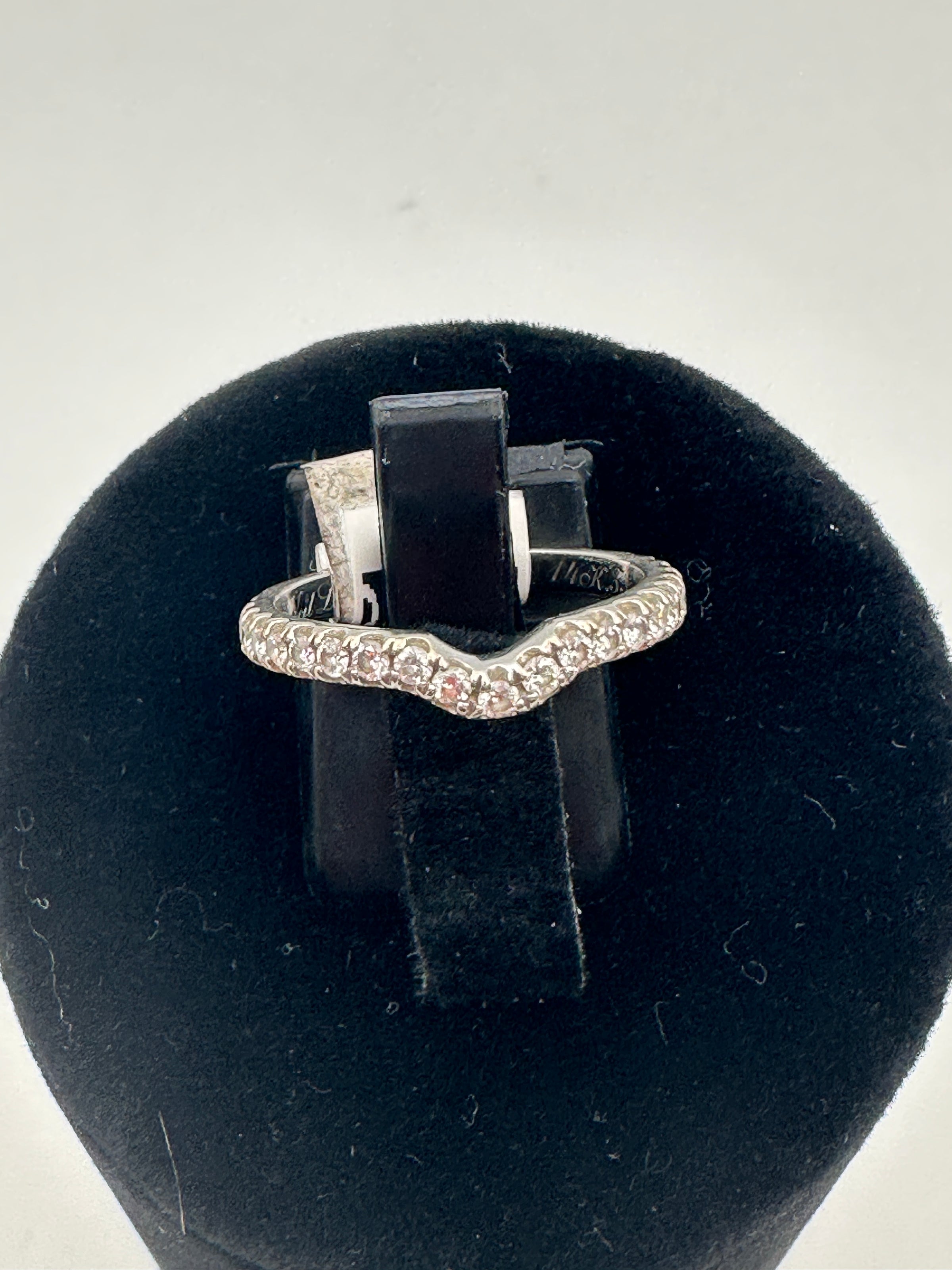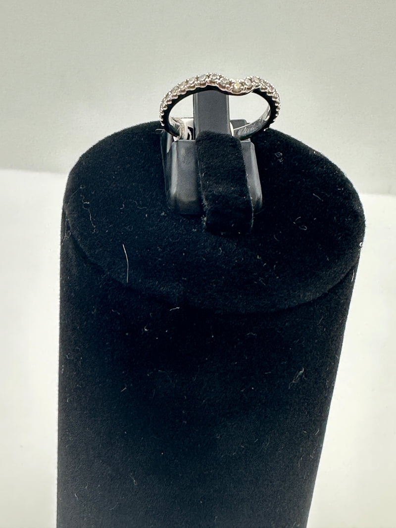 Ladies 18ct white gold diamond shaped wedding band set with brilliant cut diamonds in a pavie style setting.