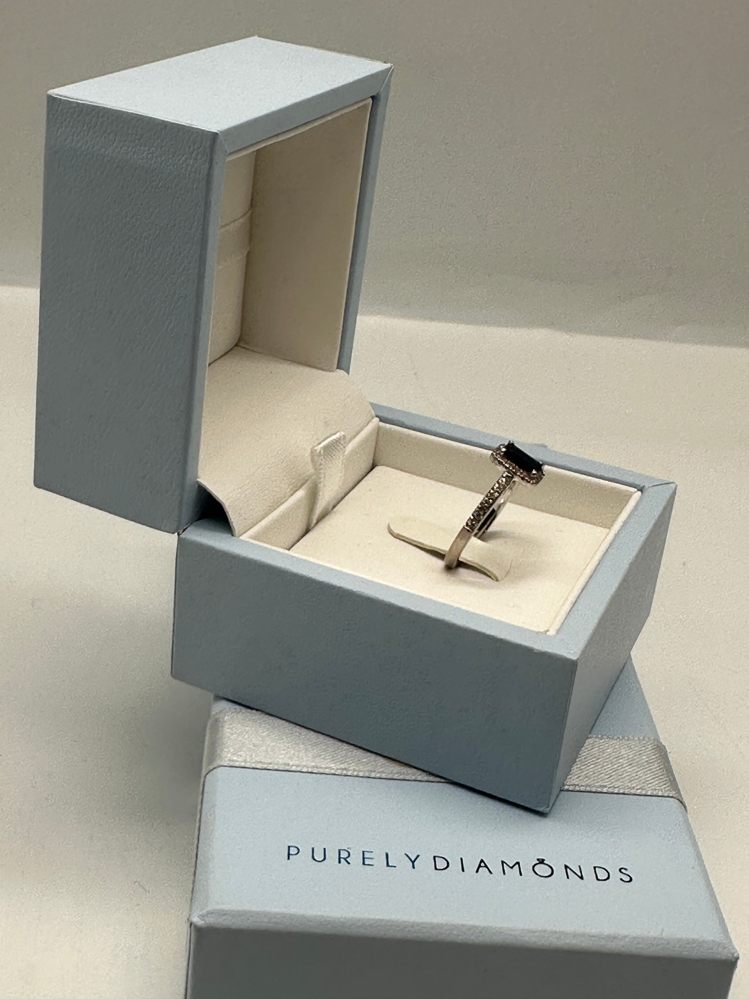 This piece reflects the enduring heritage of fine jewellery design, where 18ct white gold is favoured for its strength, purity and cool-toned sophistication. Sapphire and diamond combinations have long been associated with luxury, commitment and regal refinement, while the halo setting is celebrated for maximising brilliance and enhancing centre stones with a radiant frame of light. This style remains a sought-after choice for collectors who value classic aesthetics and exceptional craftsmanship.