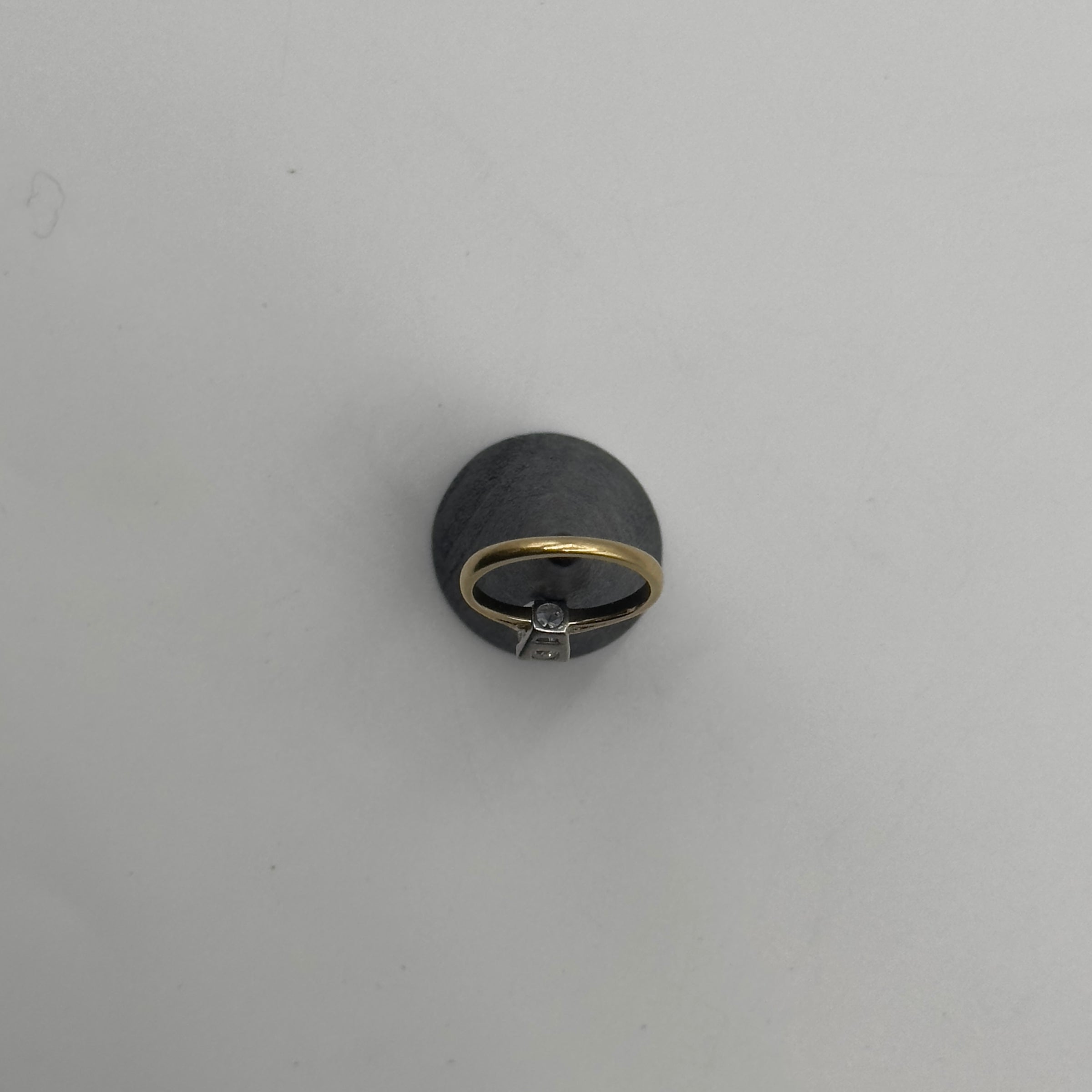Materials: 18ct yellow gold shank with an 18ct white gold head and 4‑claw setting.