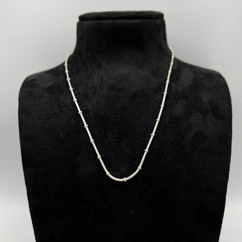 The 925 Sterling Silver Ball & Snake Chain Necklace (15") is a sleek, modern piece that brings subtle texture and polish to any jewellery collection.