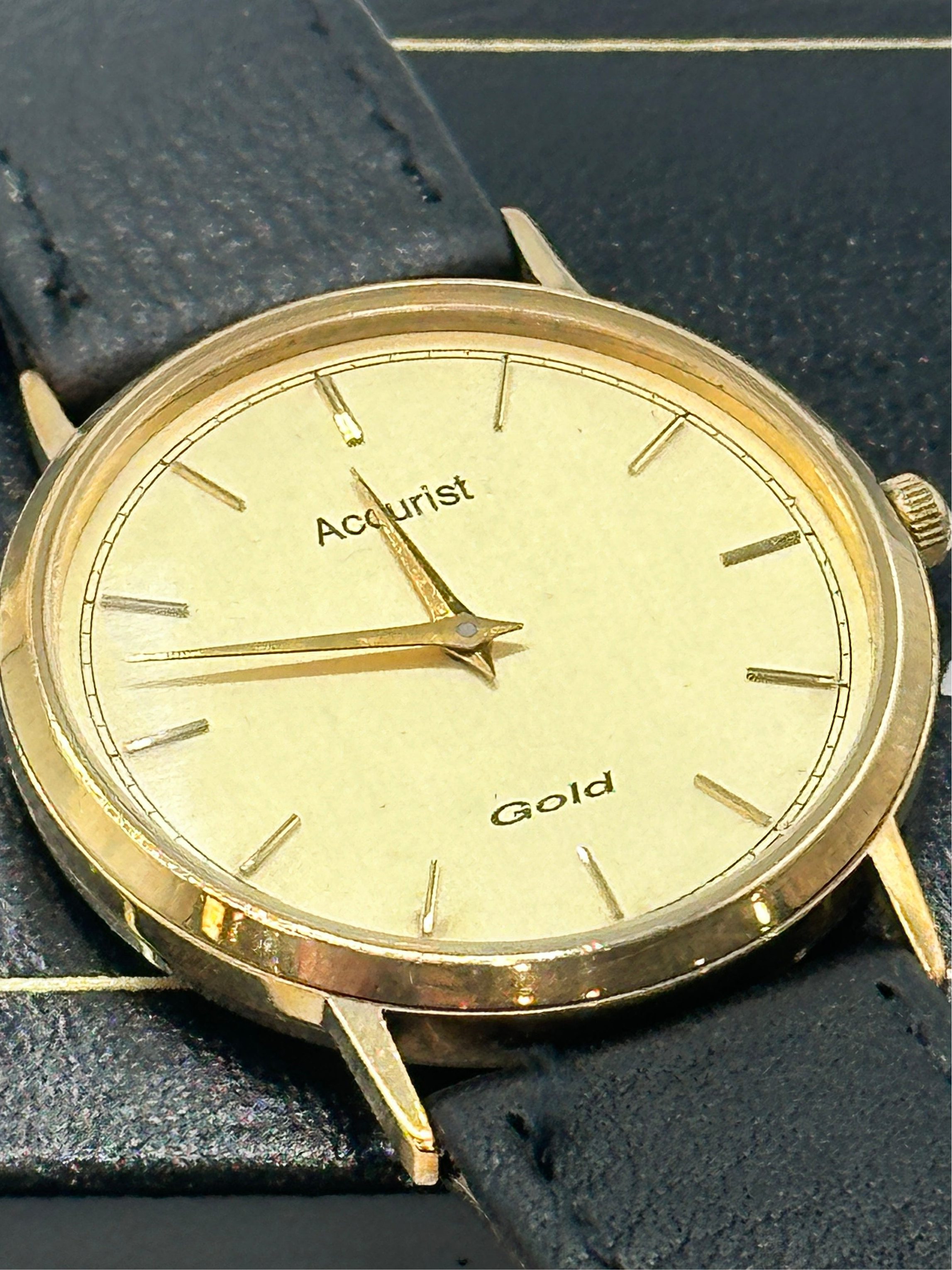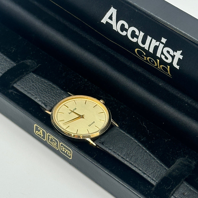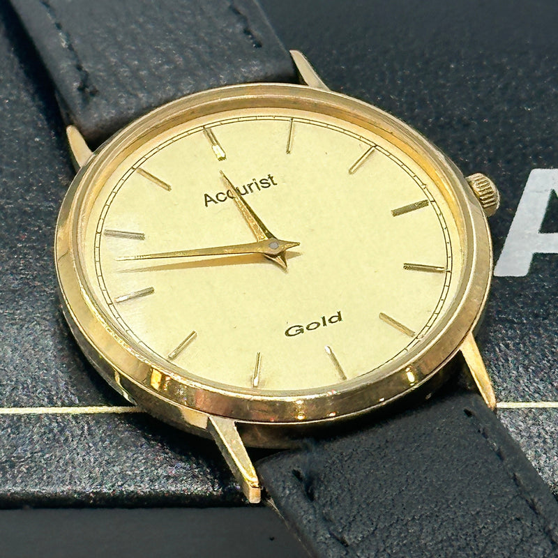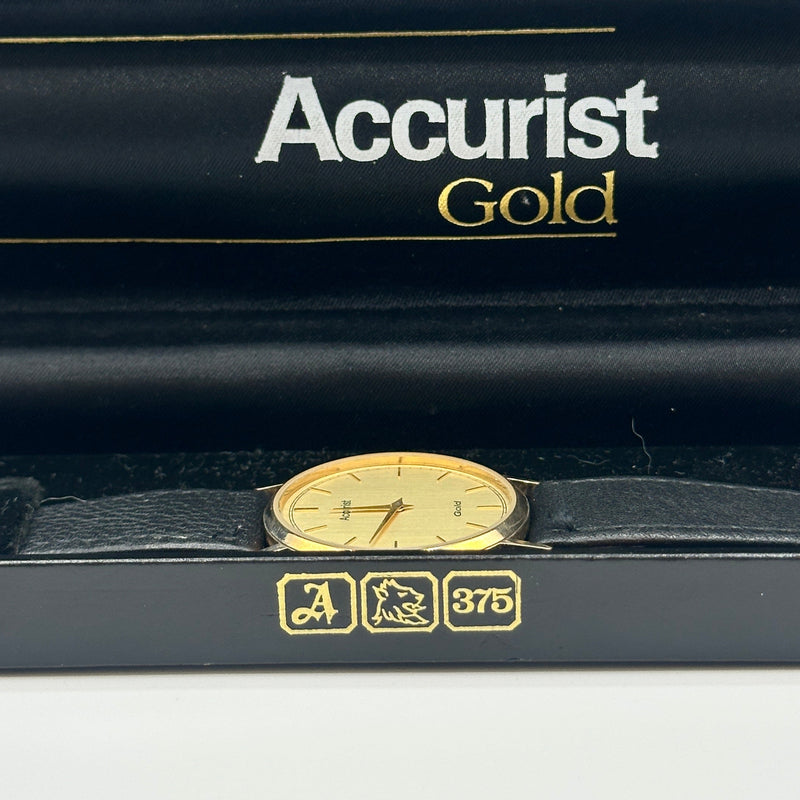 Founded in London in 1946, Accurist quickly established itself as a leading name in British watchmaking, known for combining stylish designs with Swiss precision. Accurist became particularly renowned during the late 20th century for offering high-quality watches crafted in precious metals. This 9ct gold model from 1990 captures the brand's commitment to elegant simplicity and robust craftsmanship, offering a timeless classic for collectors and discerning wearers alike.
