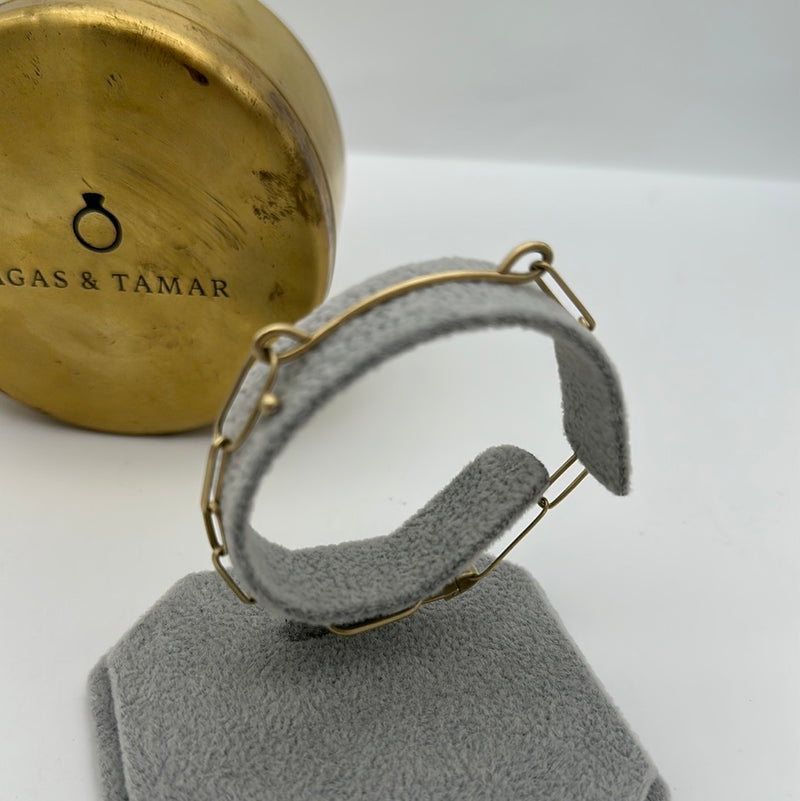 This pre-owned Agas & Tamar gold hook bracelet has been thoroughly inspected by Elite HNW to ensure its authenticity. As a second-hand item, it may exhibit minor signs of wear. Purchasing vintage jewellery requires an appreciation for the item’s history and an understanding that it may need careful maintenance to preserve its beauty.