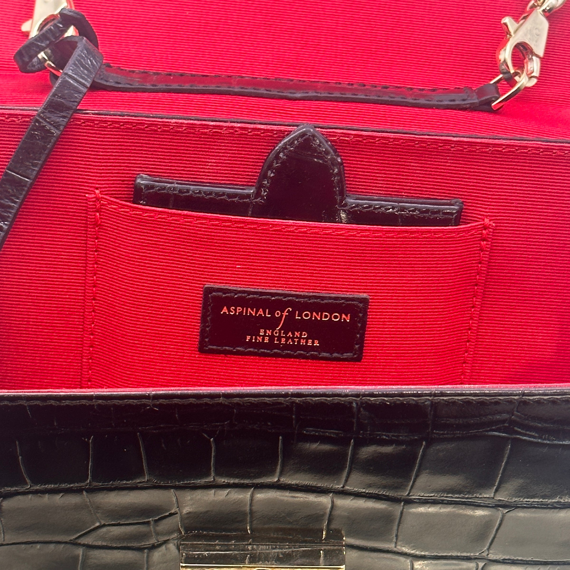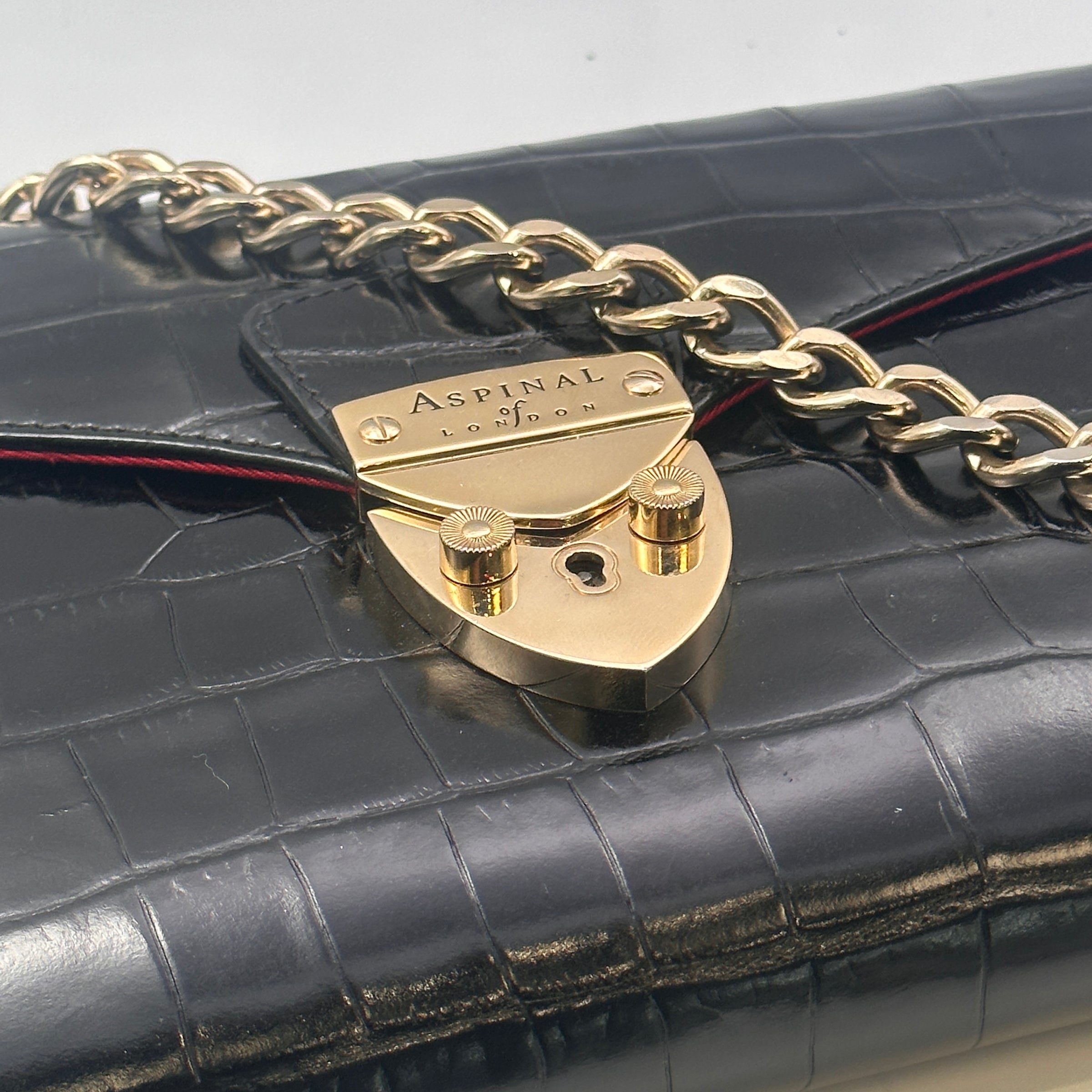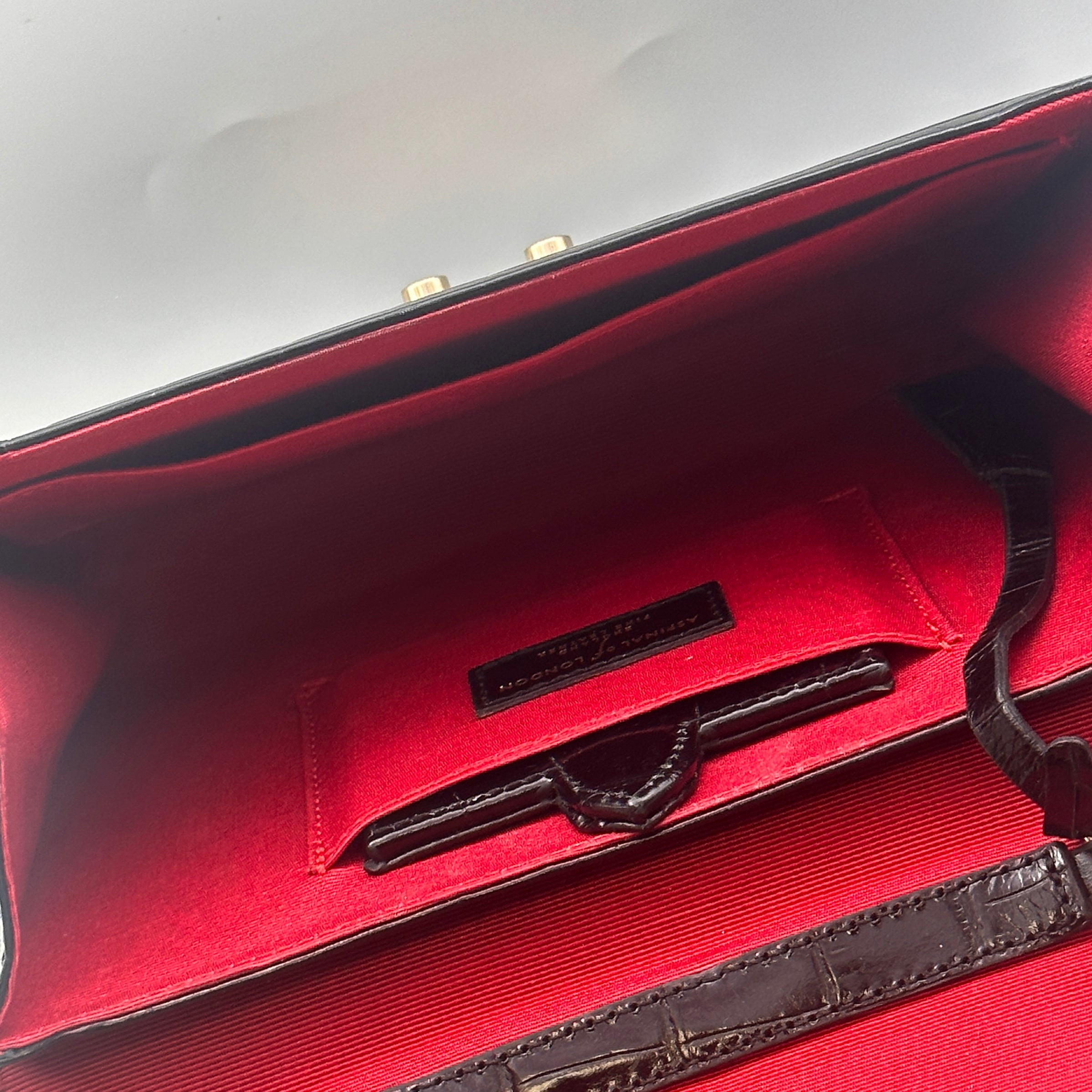 Hardware: Accented with gold-tone hardware, including the embossed Aspinal of London logo on the front, adding a touch of refinement.