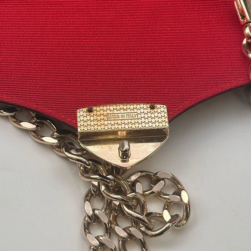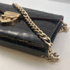 Strap: Equipped with a detachable gold-tone chain strap, allowing for comfortable crossbody wear or conversion into a stylish clutch.