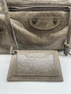 Materials & Design: The Balenciaga La Cagole City Handbag in beige is meticulously crafted from premium lambskin leather, featuring a distinctive aged finish that enhances its vintage appeal. The bag's design is characterised by its slouchy silhouette, adorned with signature stud and buckle details, reflecting Balenciaga's edgy aesthetic.