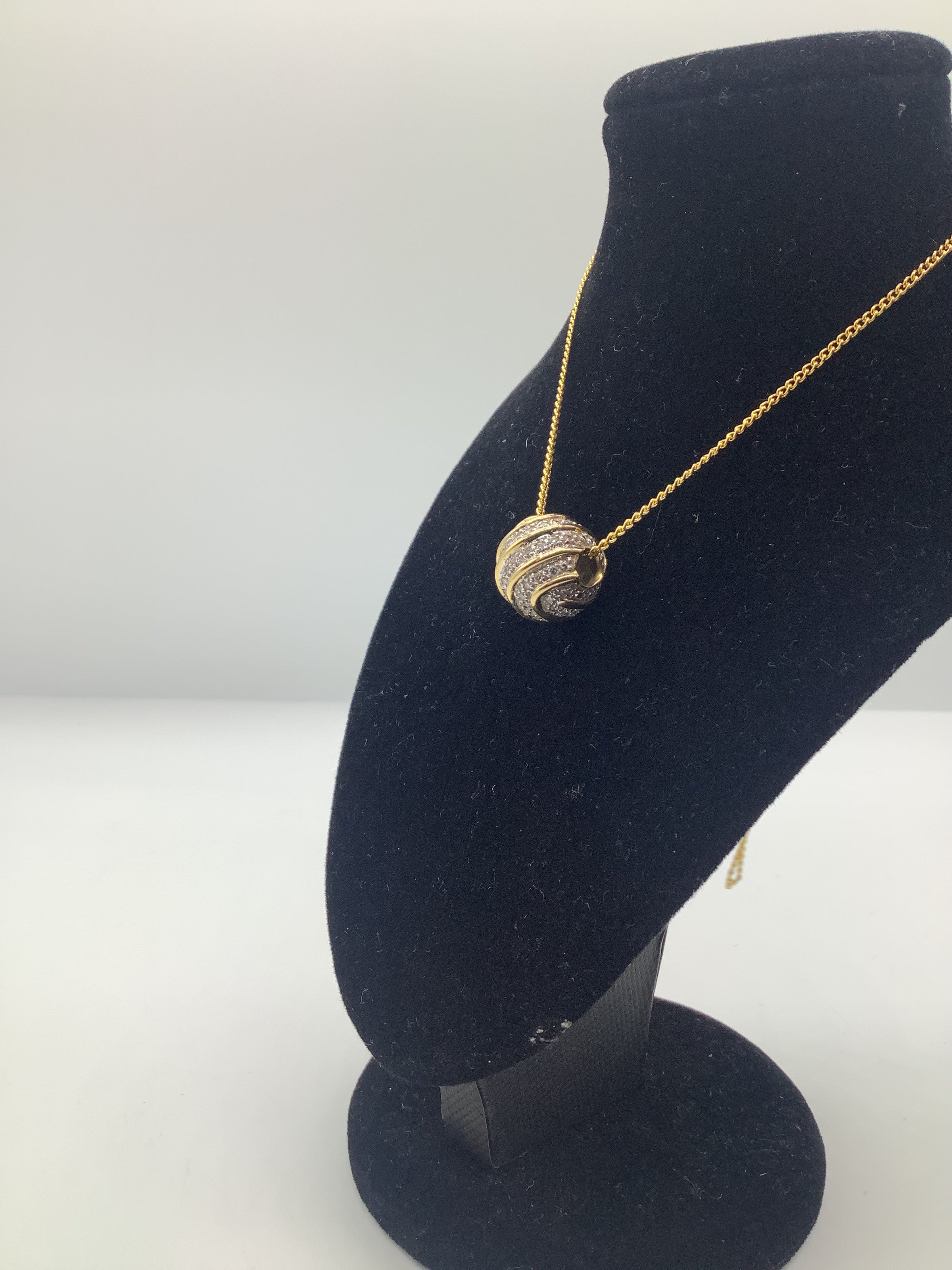 This pendant combines the beauty of yellow gold with the sparkle of diamonds, creating a luxurious piece that exudes timeless elegance. The swirl design adds a modern, dynamic element, making it an ideal accessory for those seeking a sophisticated yet unique piece of jewellery.
