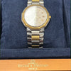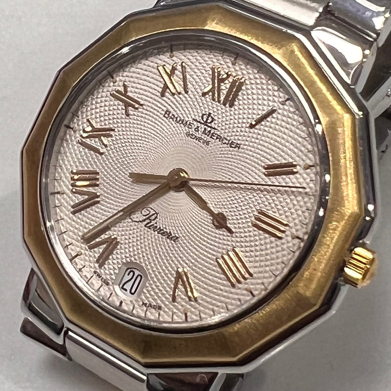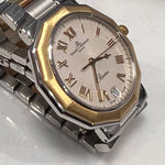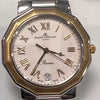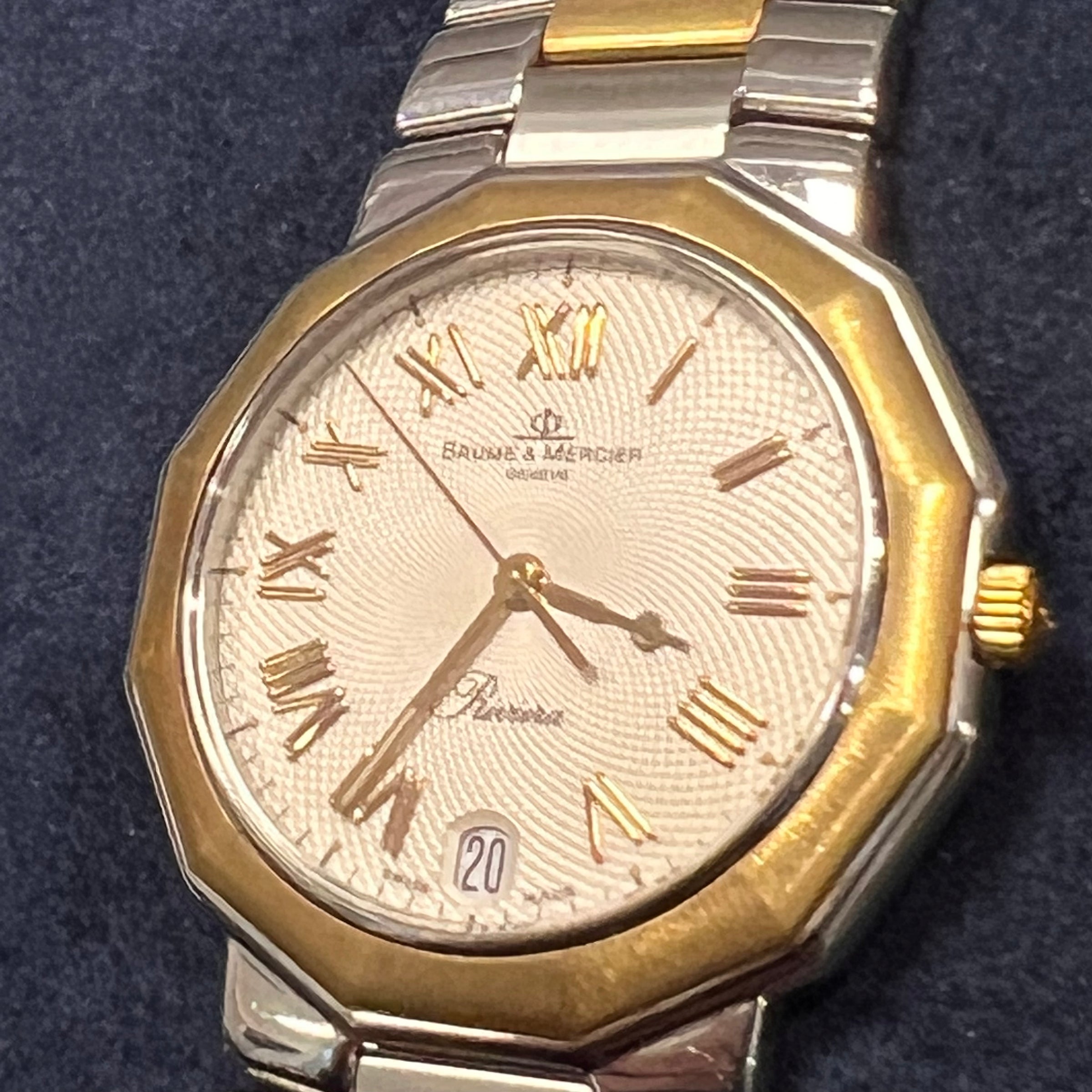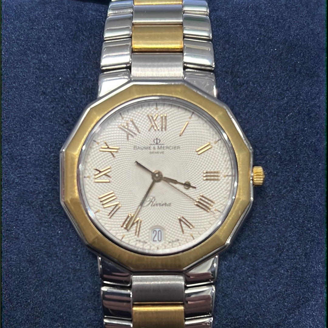 A beautiful example of this highly sought after classic men’s watch. Set in a steel and gold case and bracelet, with a white dial, Roman numerals and date function. The watch has been owned by the same owner since it’s original delivery on the 01/12/1998. The watch is a full set, with registration cars, inner box, outer box, book, and outer sleeve. The watch has been recently serviced by Baume and Mercier.