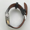 This Bell & Ross features a 38mm stainless steel case, a thin stainless steel bezel to enhance the dial, black dial with beige hour markers, hands and a beige sub dial, date window at 6 O'clock and a dark grey calf skin strap with bright orange stitching.