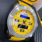 This watch is unworn and in perfect condition and come complete with authenticity documentation, user manual and leather carry pouch. Along with the yellow carry case.