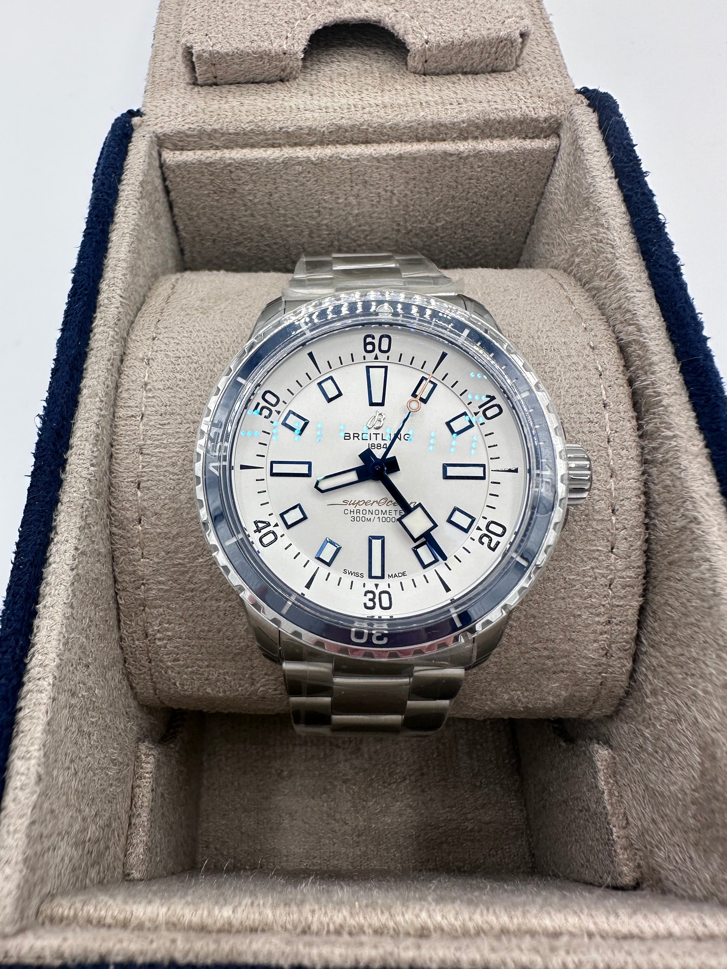 Men's silver dial with stainless steel bracelet and ceramic bezel - COSC Chronometer Certified. Condition: Unworn with stickers