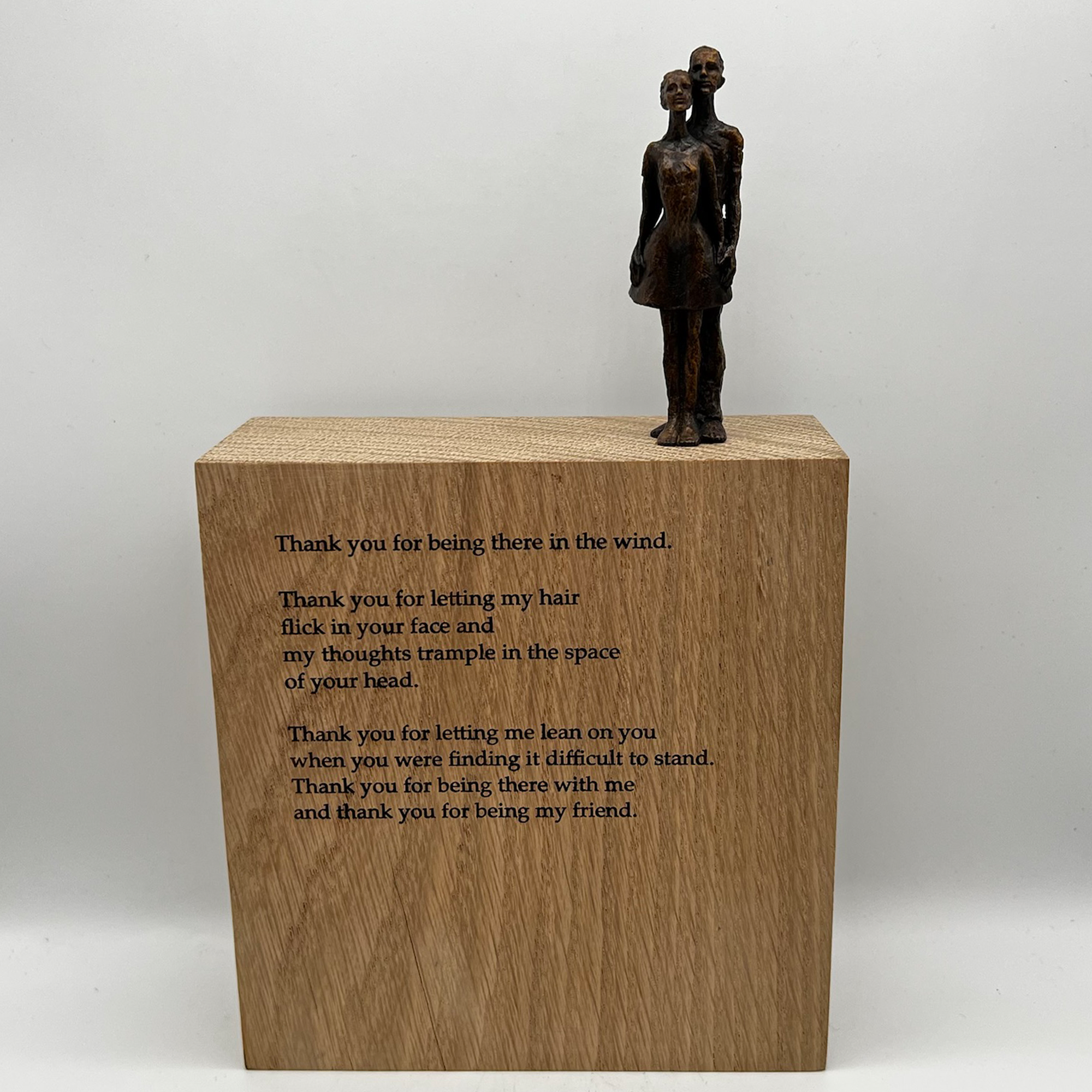 Carol Peace Sculpture - 'Thank You' in Bronze, on Wooden Block