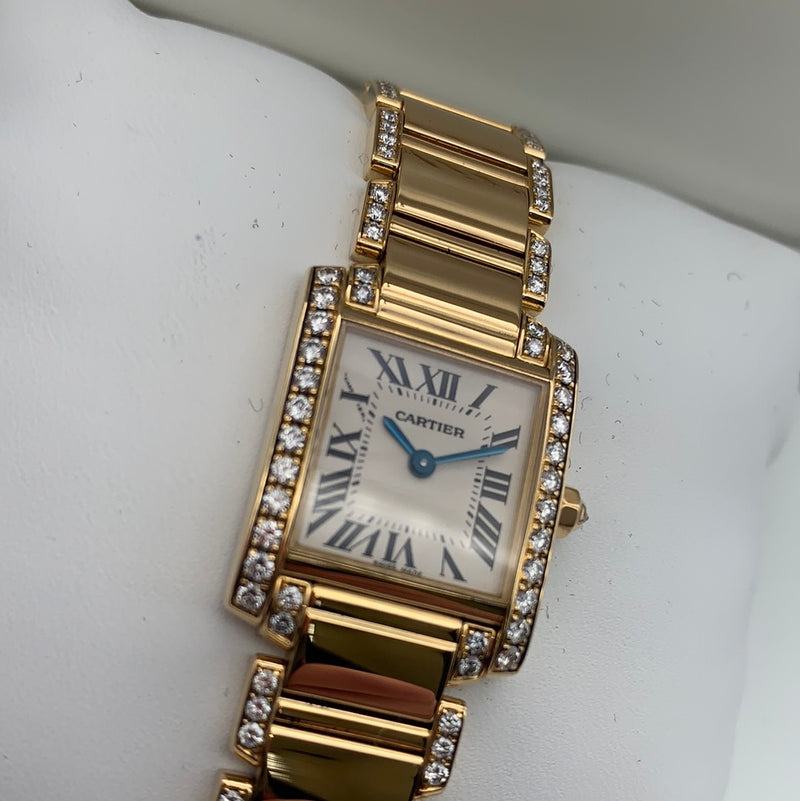 Cartier 18ct Gold Tank Francaise With Diamond Shoulders And Bracelet