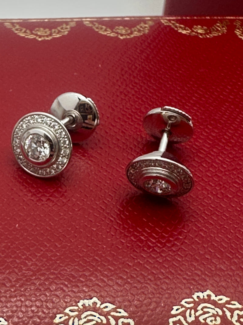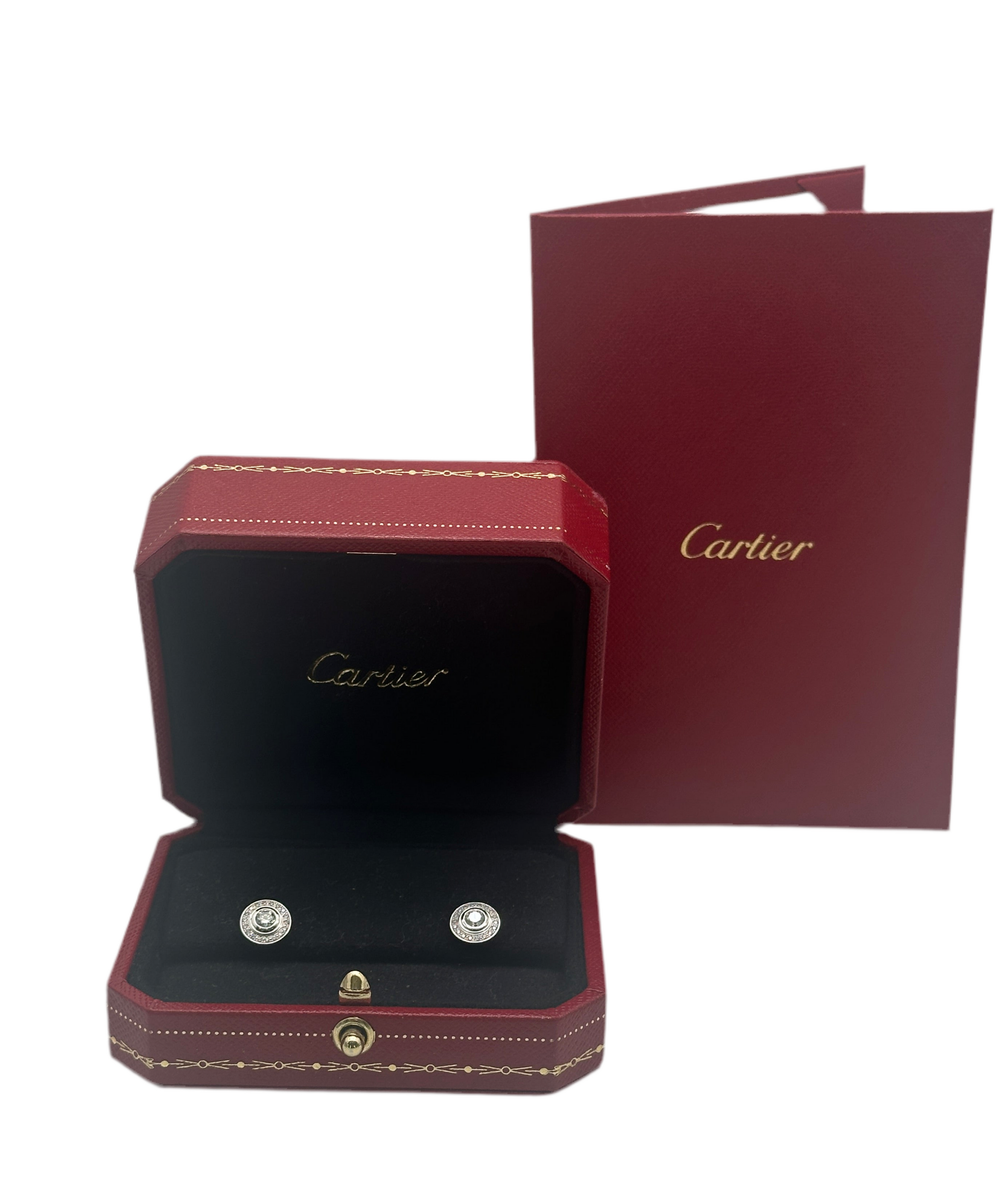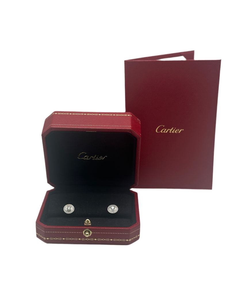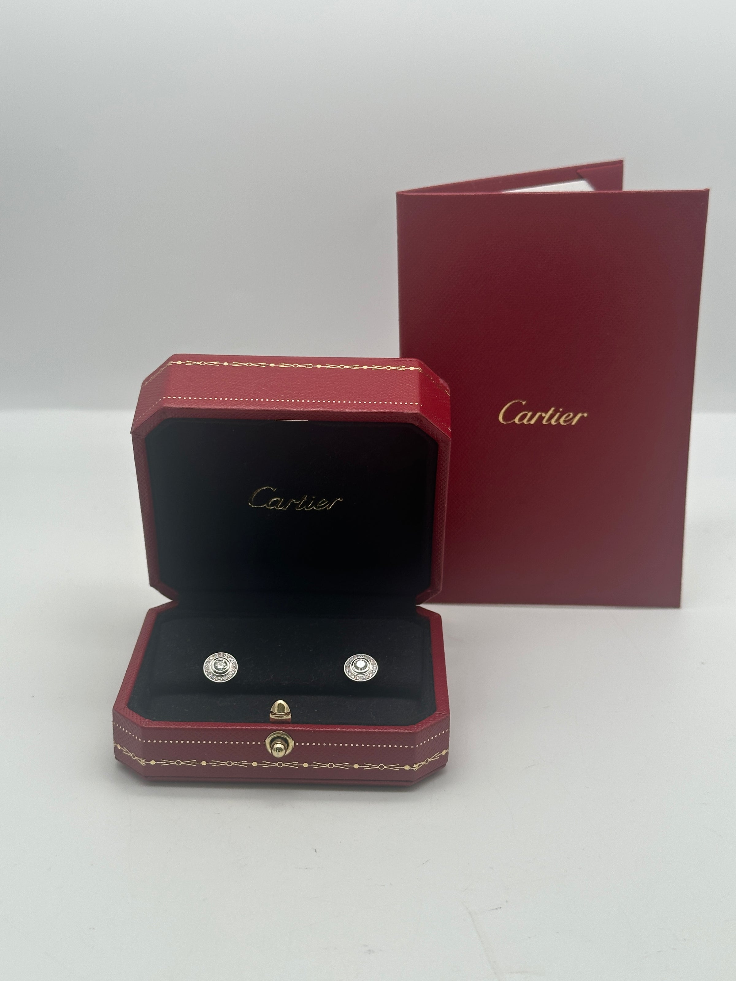 • Materials & Design: The Cartier d'Amour earrings are meticulously crafted from 18ct white gold, featuring a central brilliant-cut diamond encircled by a delicate halo of micro-pavé diamonds. This design enhances the diamond's brilliance, offering a timeless and elegant aesthetic.