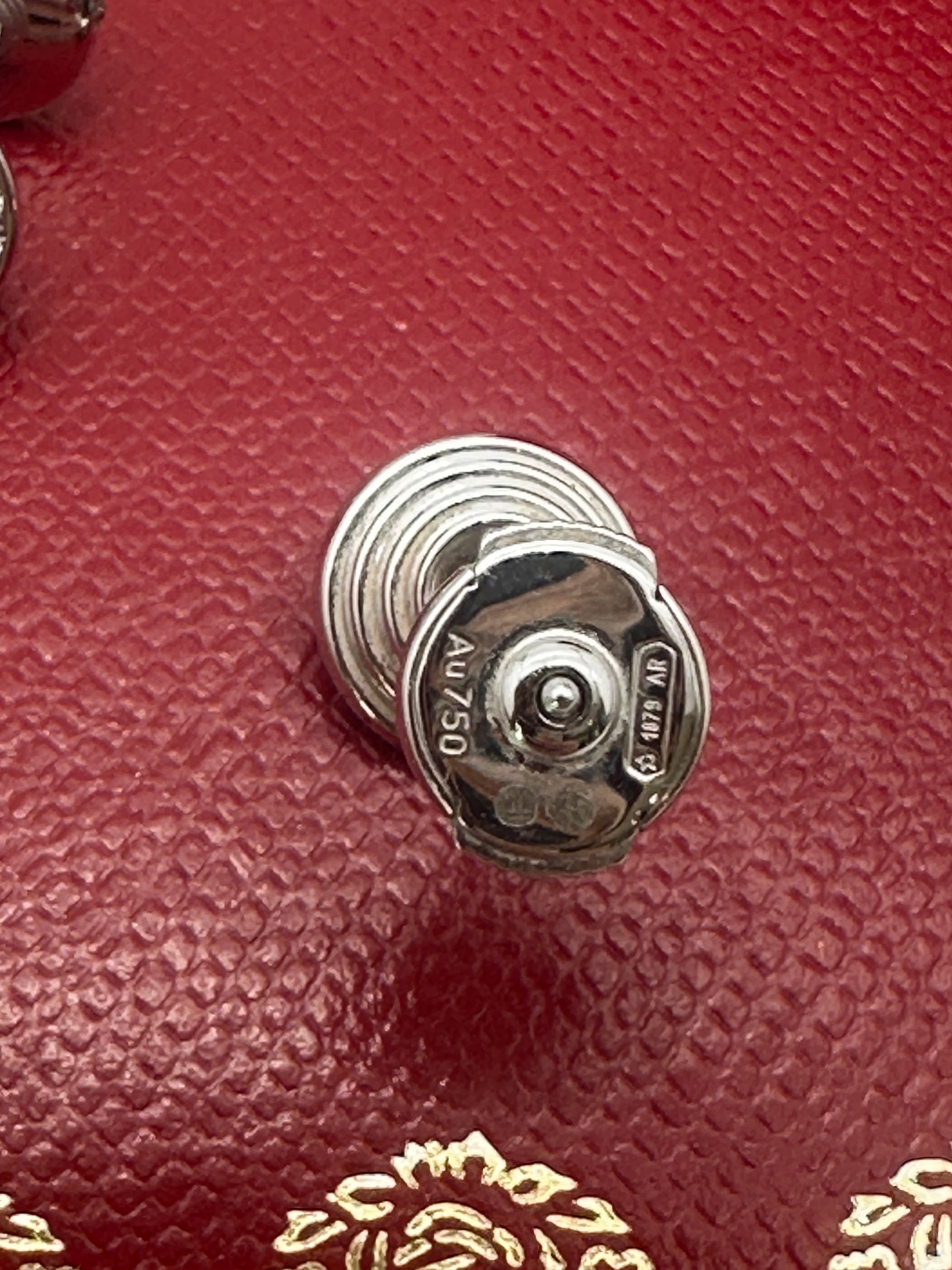 • Diamonds: Each earring is set with a central brilliant-cut diamond, with total carat weights varying by model. For instance, the medium model features diamonds totalling 0.38ct centre with diamond halo