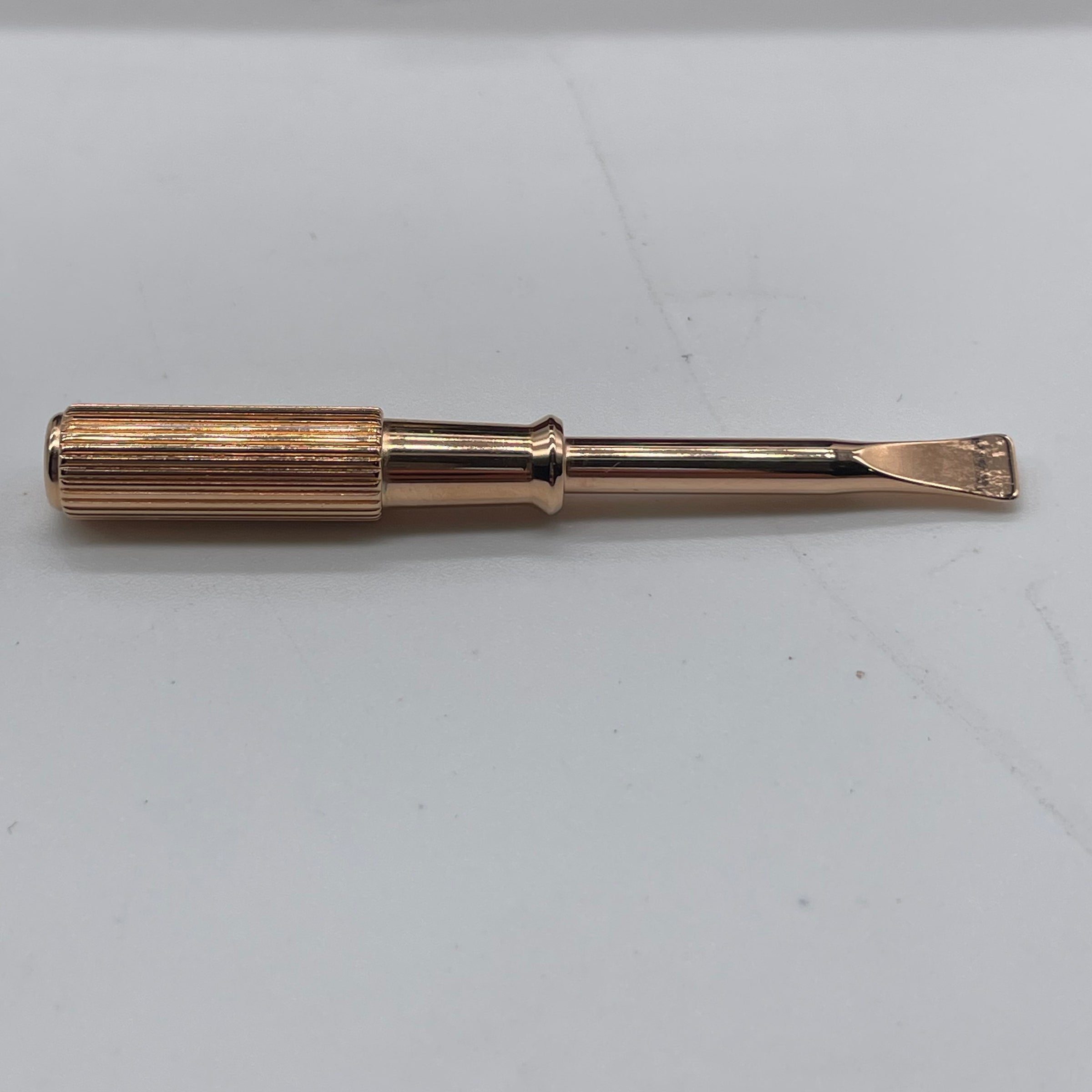 LOVE bracelet, rose gold 750/1000. Comes with a screwdriver. Width: 6.1 mm. Created in New York in 1969, the LOVE bracelet is an icon of jewellery design: a close fitting, oval bracelet composed of two rigid arcs which is worn on the wrist and removed using a specific screwdriver. The closure is designed with two functional screws placed on either side of the bracelet: you will need help to open or close it. To determine the size of your LOVE bracelet, measure your wrist, adding one centimetre to your size for a tighter fit, or two centimetres for a looser fit.